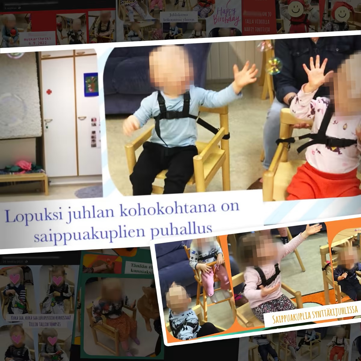 В детском саду в Каяани детей привязывали к стульям ремнями безопасности. По заявлению городских властей, это делалось в целях их безопасности. Изображение: Kuvakaappaus päiväkodin julkisesta Facebook-julkaisusta