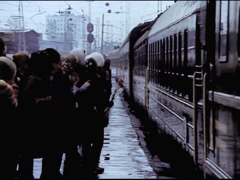 Гость:Если конкретно смотреть ОТ вокзала, то слева никаких 9-этажек нет, стало быть это не Белорусский. НО! Башня очень похожа, согласен. Вероятно, кадр с прибытием поезда ( где 9-этажка ) снят на одном вокзале, а кадры с башней, возможно, на Белке. Т.е., задействованы разные вокзалы.