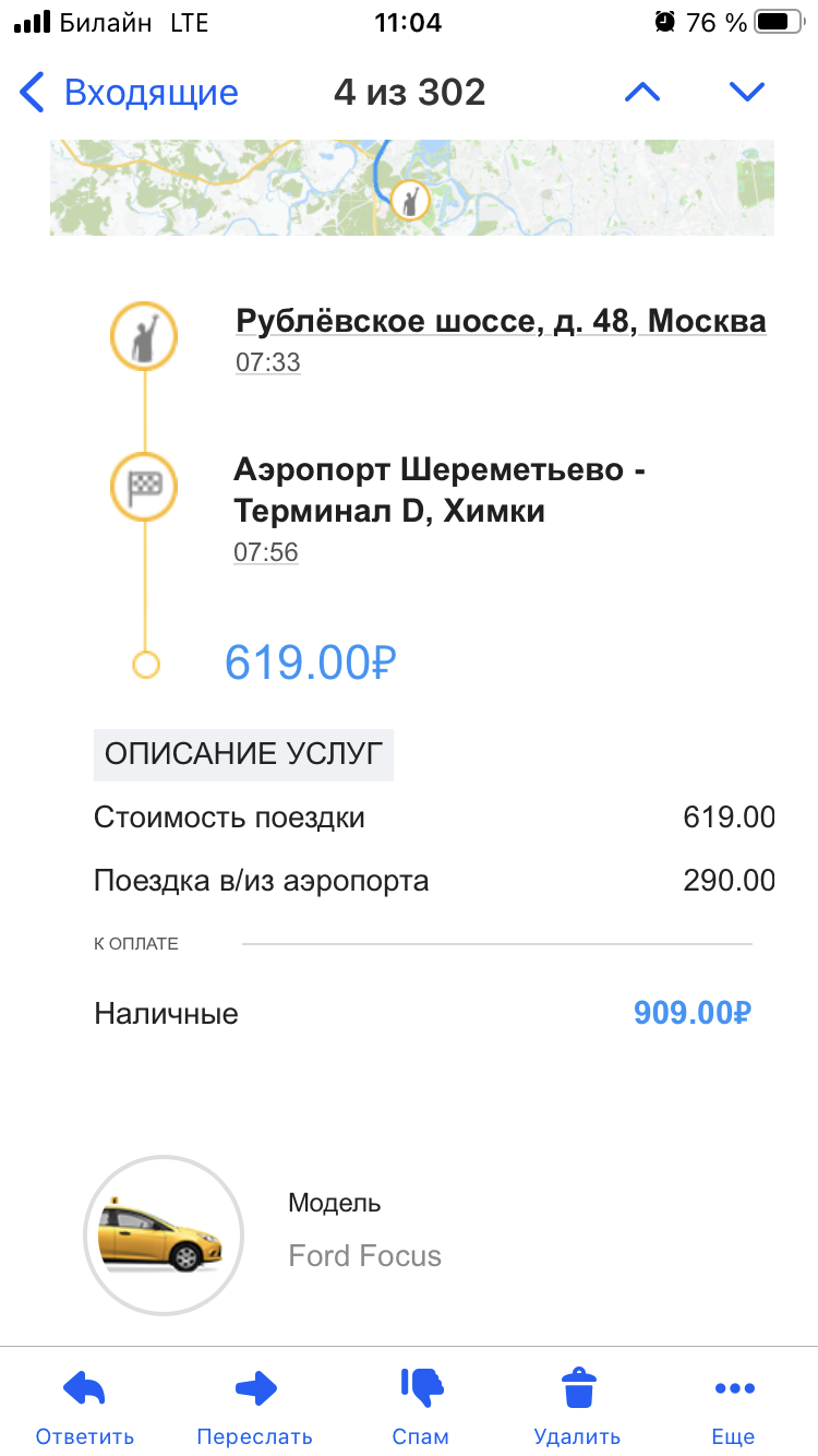 Открыл почту, а там отчёт о моей поездке на такси -