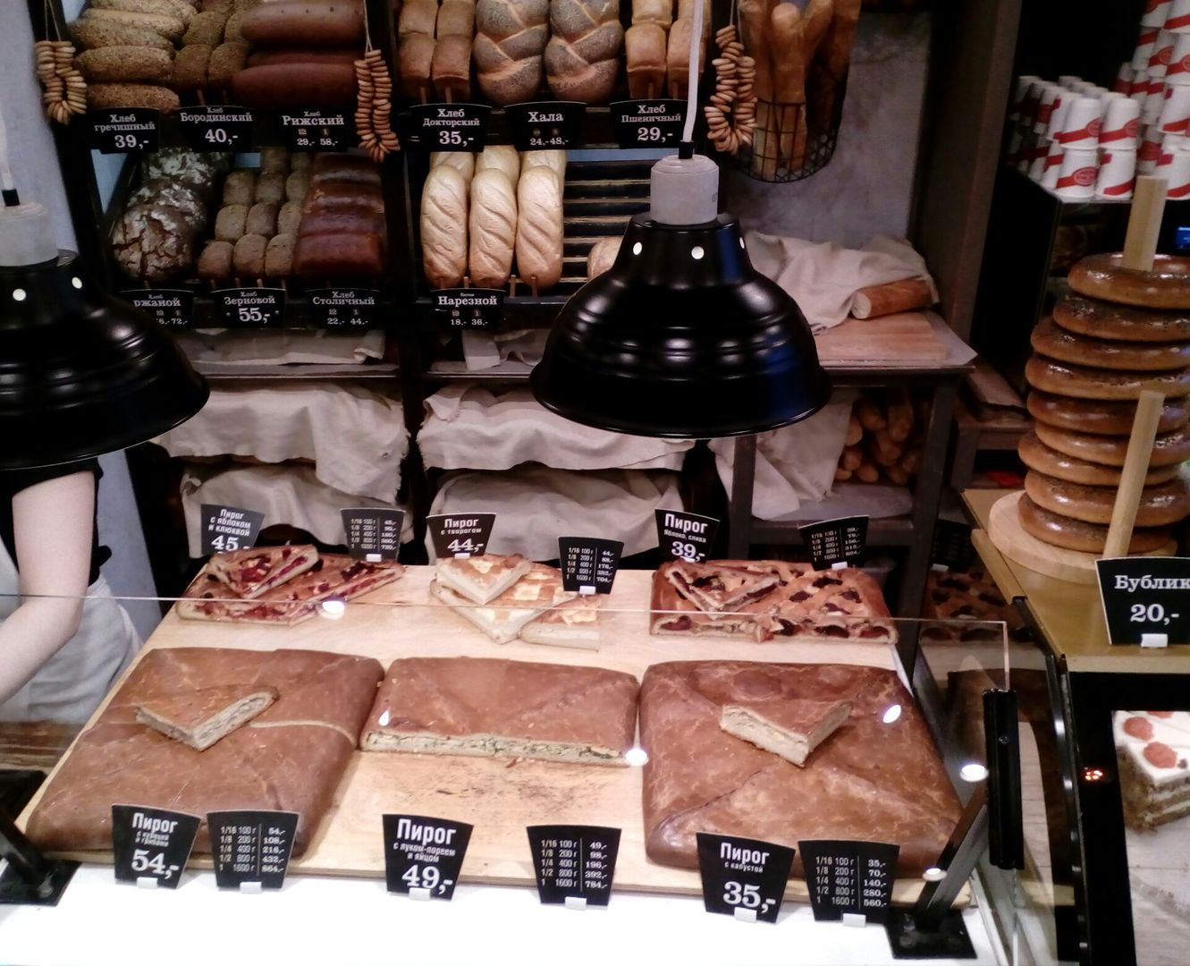 Трудно представить себе в Москве где-либо ценник с однозначным числом. Здесь же кондитерские изделия можно приобрести всего за 9=, за половинку багета с вас возьмут 10=