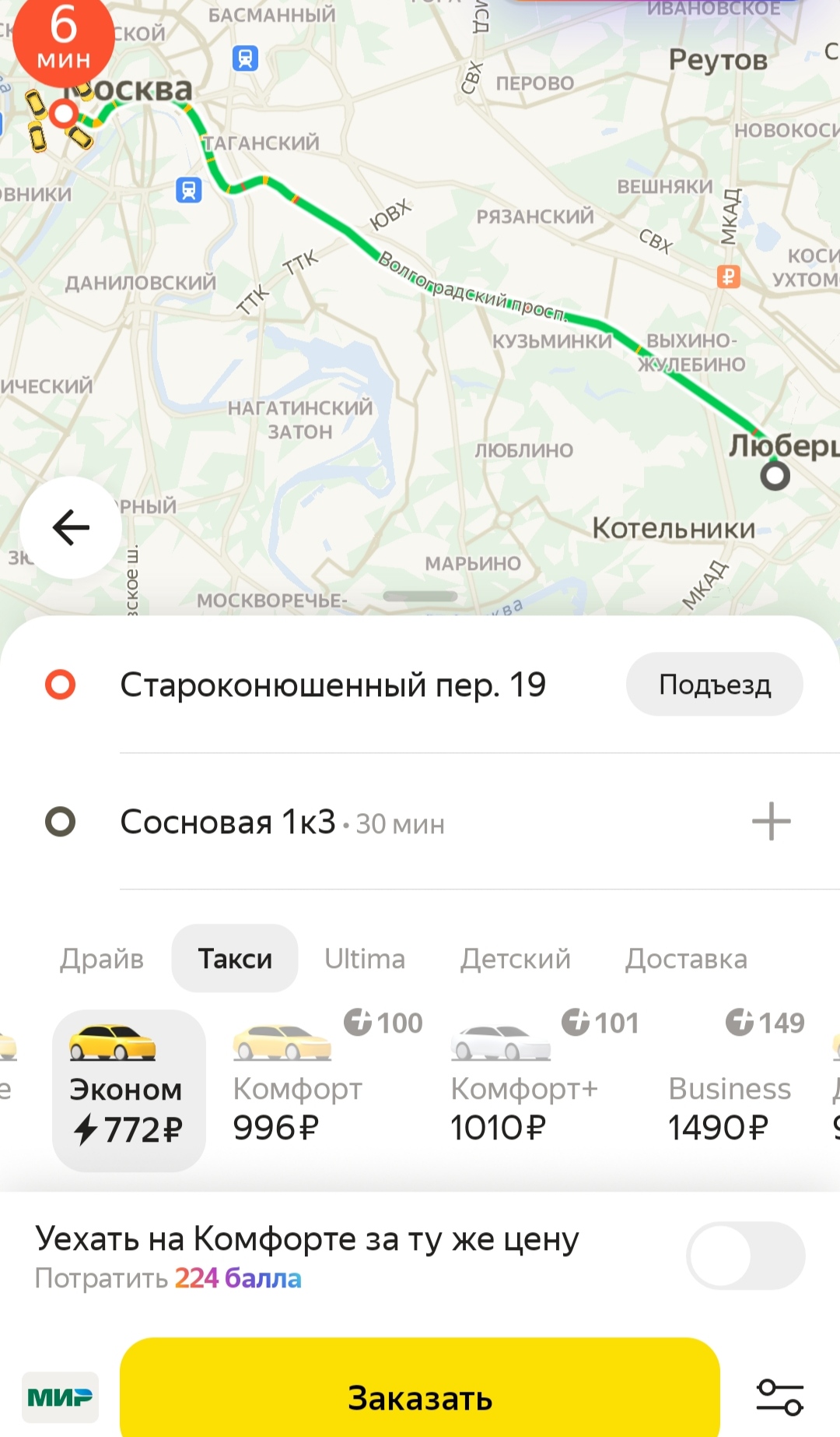 Фред, вот очередная иллюстрация как простые люди перемещаются по району за 500 руб. Потом межрайоный заказ за штукарь и снова мука по району. Короткие заказы дешевые, доступны любым пластам населения. Люди чувствуют себя людьми, а не быдлом. Слон их называет хозяевами жизни))))). Меня тоже- я ведь тоже паксом бываю