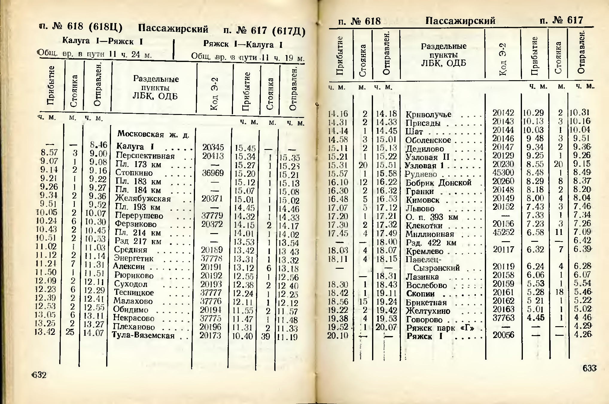 На форуме точно выкладывали.wsa-79: Форумчане, есть у кого-нибудь расписание поезда Калуга-Ряжск за 70-е или 80-е годы.