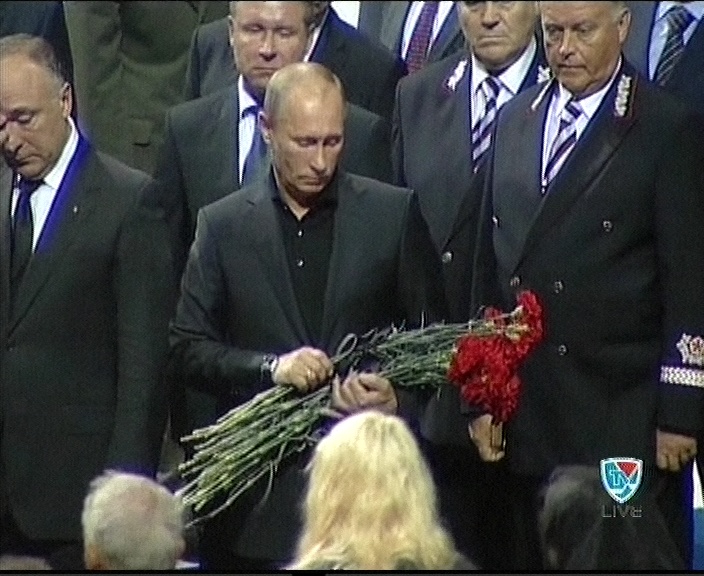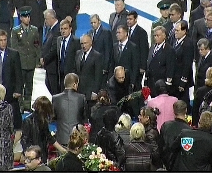 Сегодня в ледовом дворце "Арена-2000" в Ярославле состоялась траурная церемония прощания с погибшими игроками хоккейного клуба "Локомотив". Почтить память погибших спортсменов в Ярославль приехала делегация ОАО "РЖД" во главе с президентом компании Владимиром Якуниным.