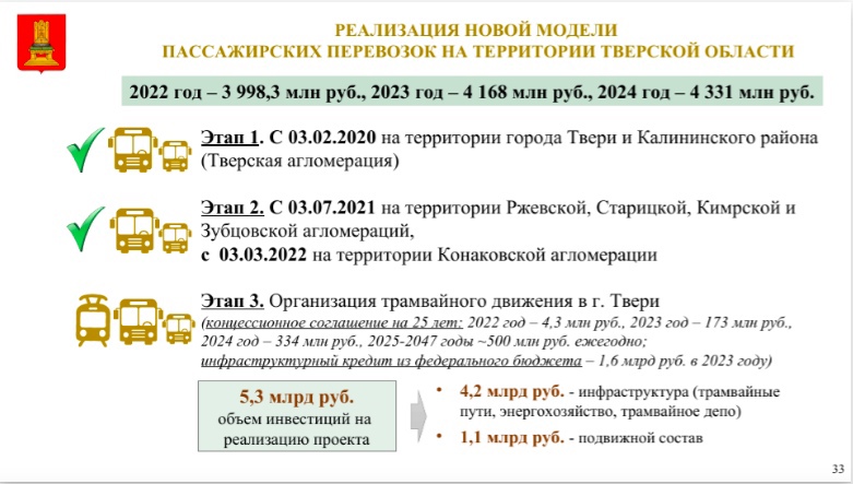 "Средняя цена одного километра транспортной работы в Твери для автобусов малого класса составляет 73,03 рублей, для автобусов среднего класса 98,67 рублей, для автобусов большого класса — 124,6 руб. Для сравнения средняя цена одного километра транспортной работы для автобусов большого класса в Перми составляет 125,1 руб., средняя цена одного километра транспортной работы для автобусов большого класса в Новокузнецке — 118,4 рублей."