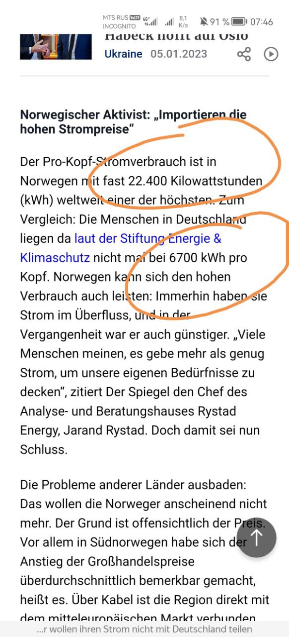 И тут мы смотрим на очевидные цифры. Норвегия потребляет на человека почти в 4 раза больше, чем Германия.