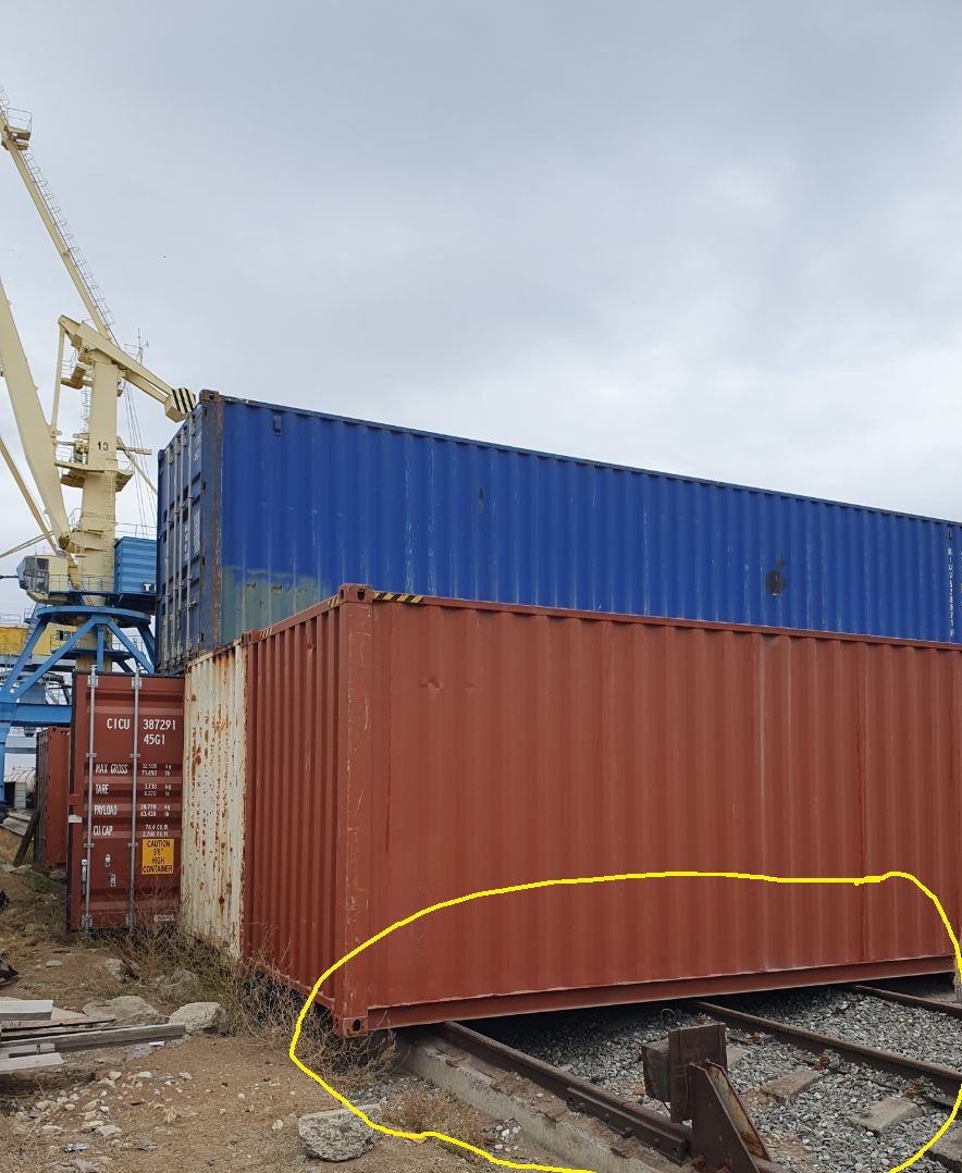 А так? Тоже Астрахань. Иранский терминал. Мы понимаем, что вы только начинаете. Всего несколько лет. Еще не все правила и нормы работы с контейнерами понятны. Но про то, что нельзя ставить тару и груз на рельсы, поперёк рельс - это должны знать даже в Иране.