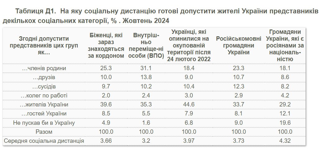 Переводить времени нет. Так что самостоятельно. Из любопытного: только 44,6% украинцев готовы впускать в свое окружение людей, оставшихся в ЛДНР, Запорожской и Херсонской областях. 6,8% вообще считают что их нельзя пускать на территорию быв. Украины.