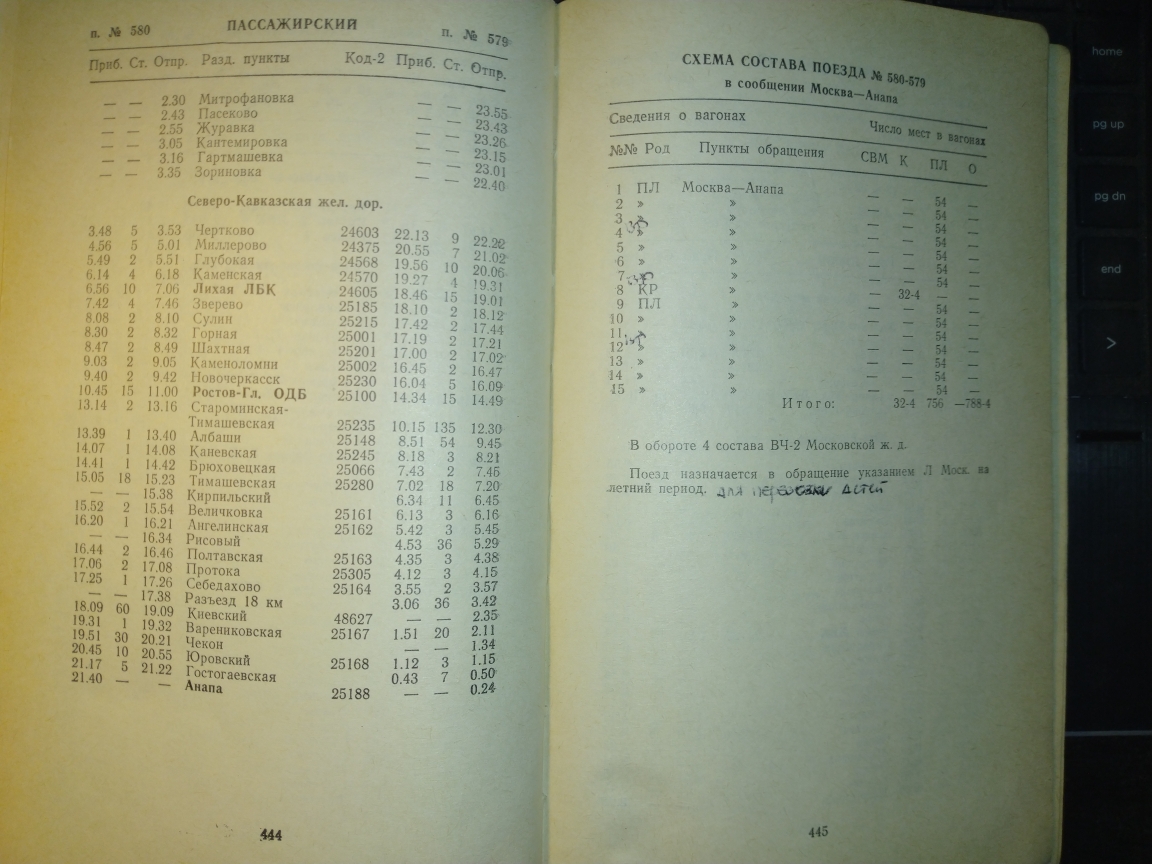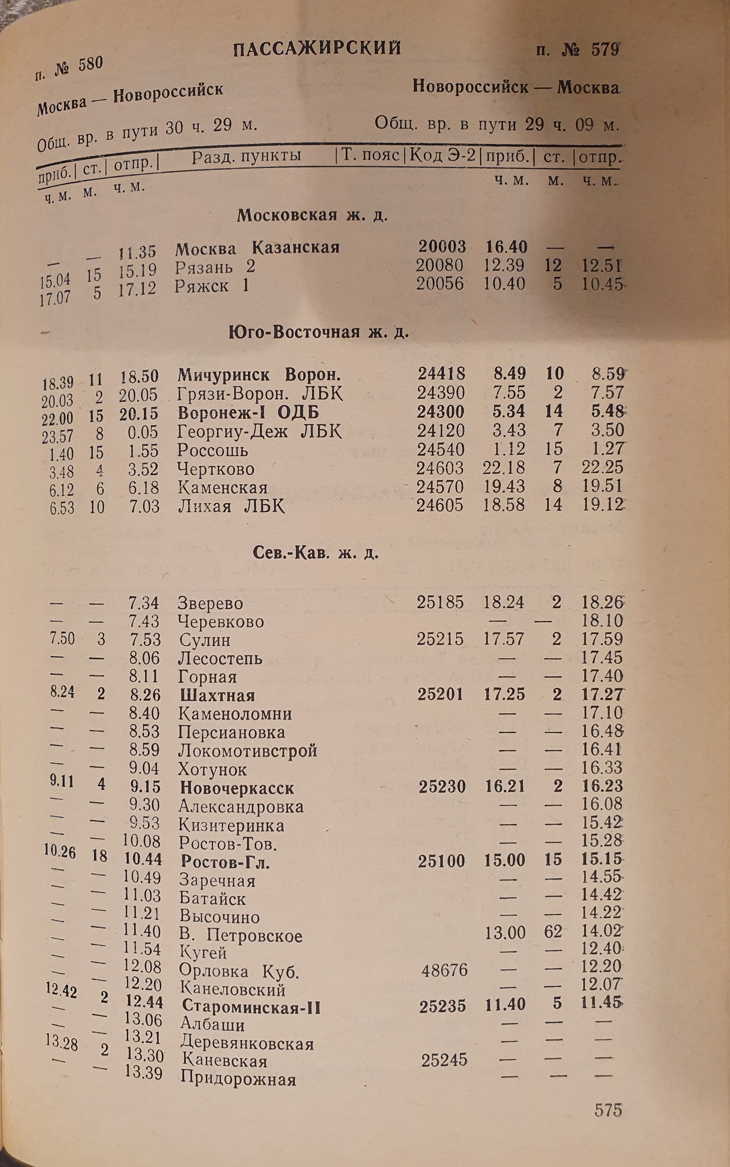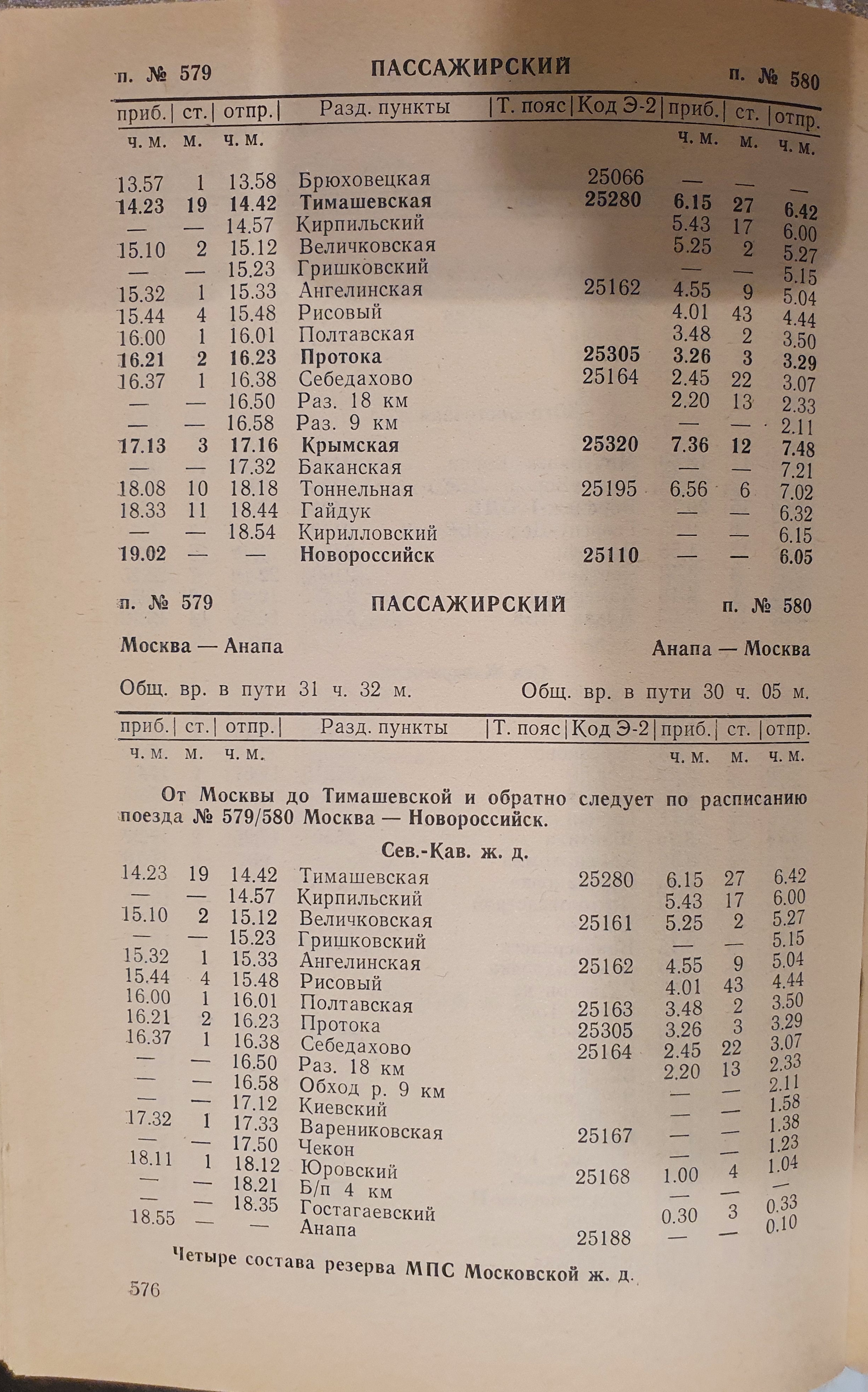 Может у кого есть расписание за 1985 год поезда Москва-Анапа 579/580?