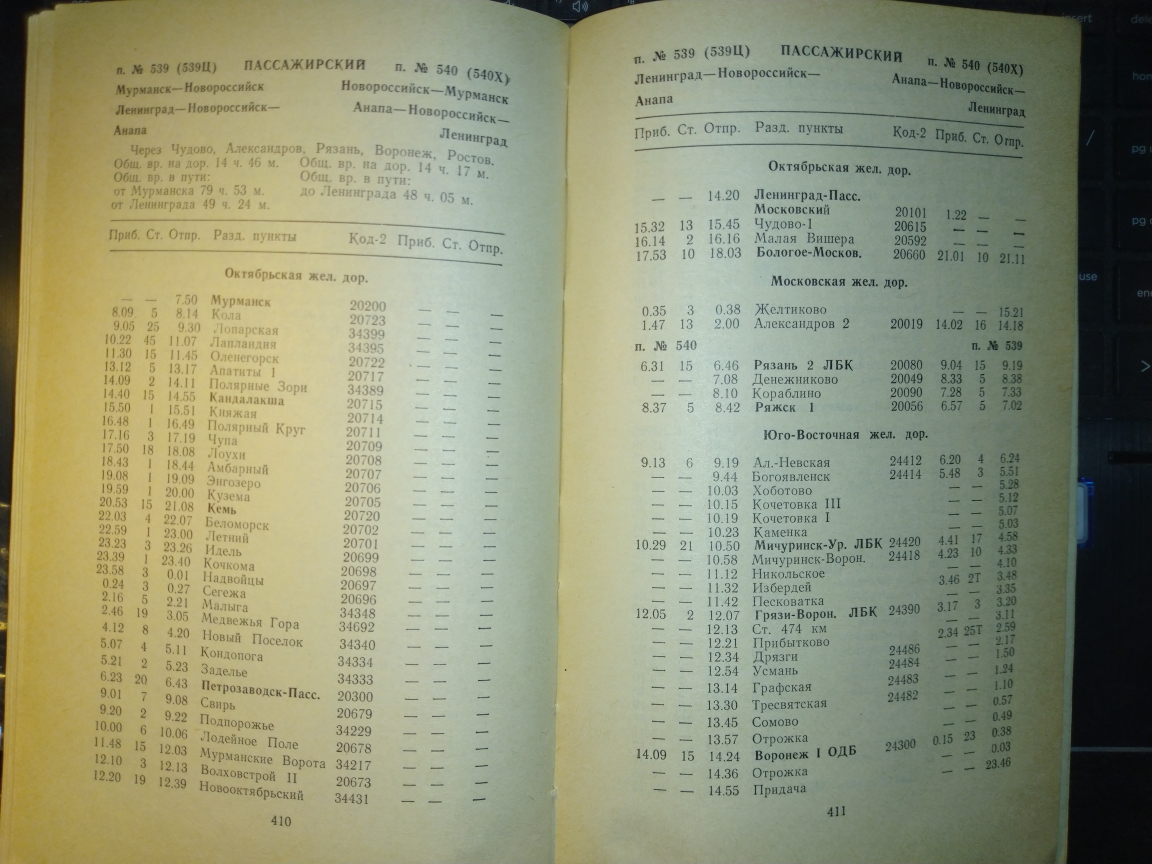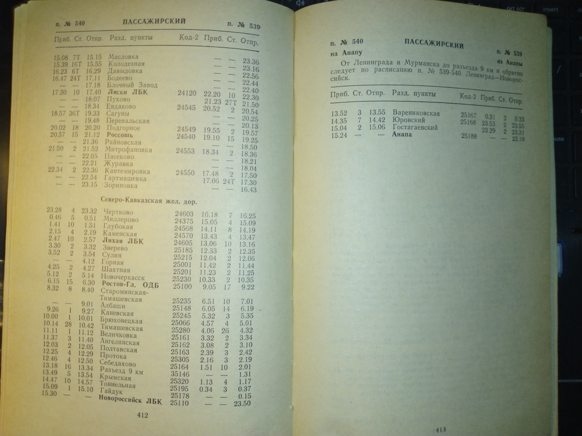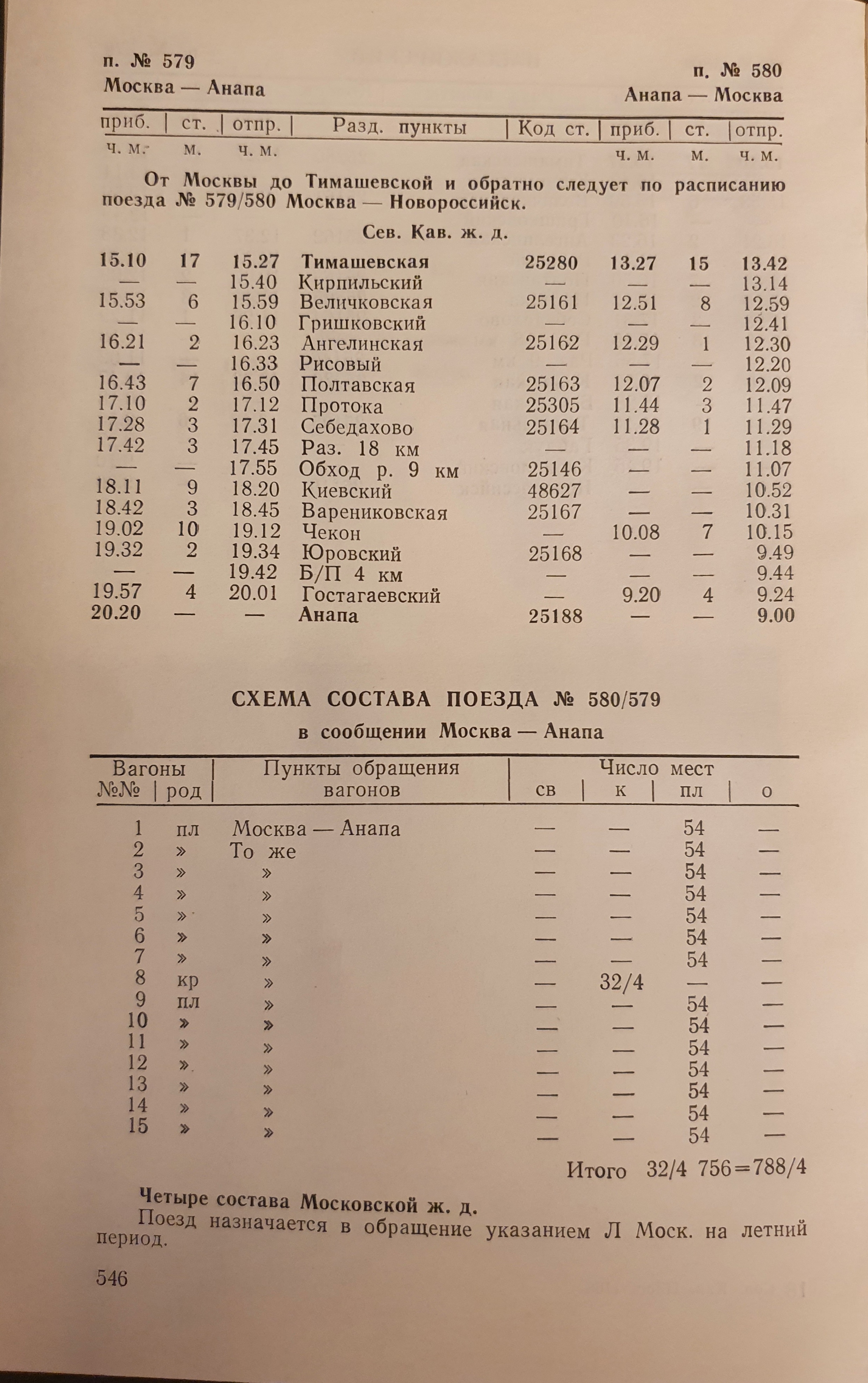 Может у кого есть расписание за 1985 год поезда Москва-Анапа 579/580?