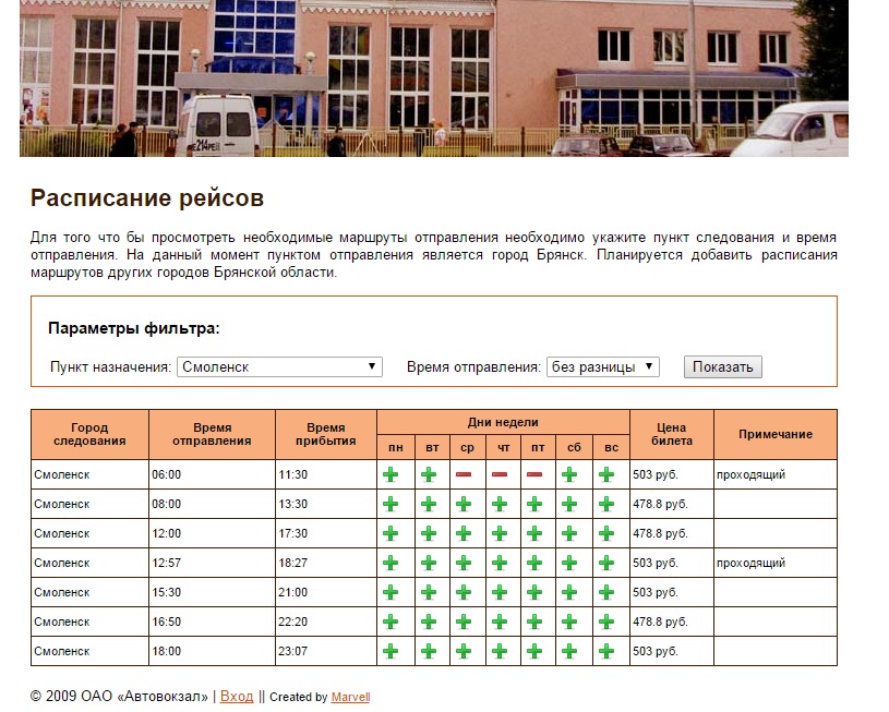 Расписание автобусов по маршруту Брянск-Смоленск от Брянского автовокзала