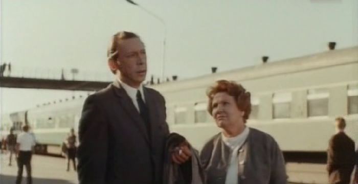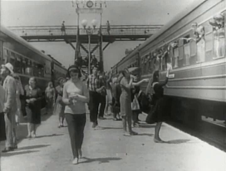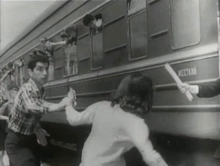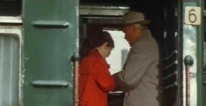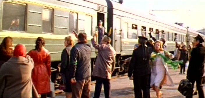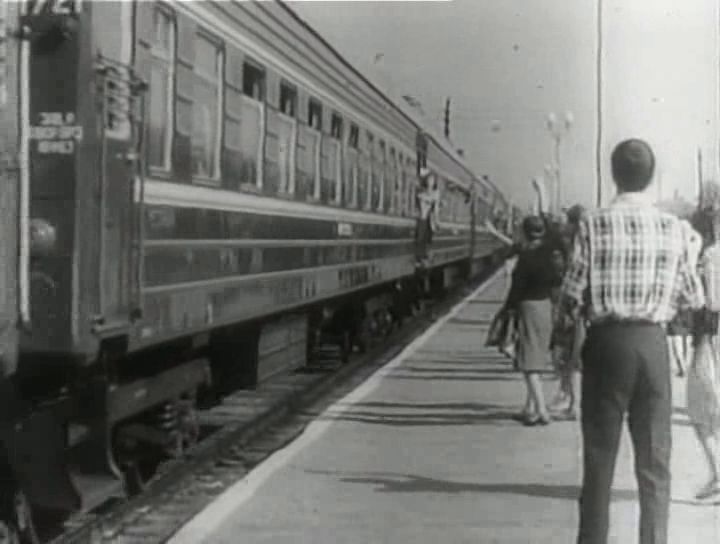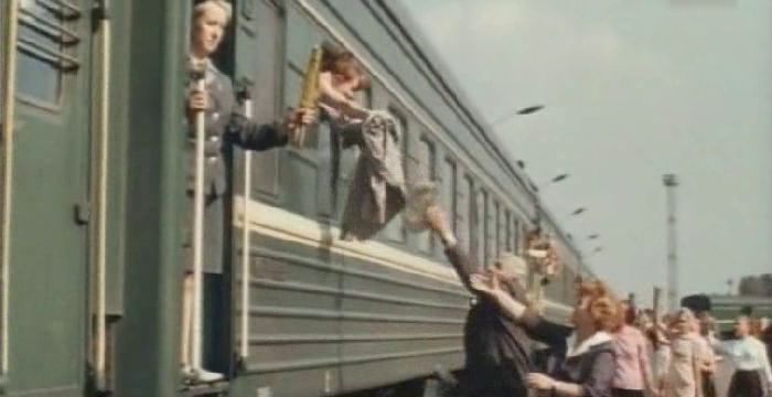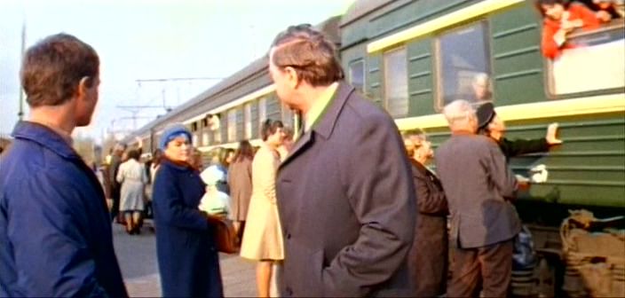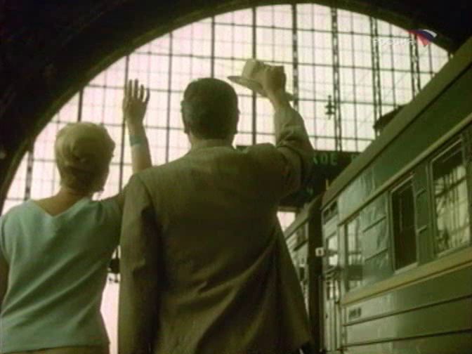 6) Окна у уходящего вагона (поезда) в конце сюжета ОПУСКНЫЕ без форточек, при чём с боковыми воздухозаборниками вагон, а не с торцевыми, как в начале сюжета;