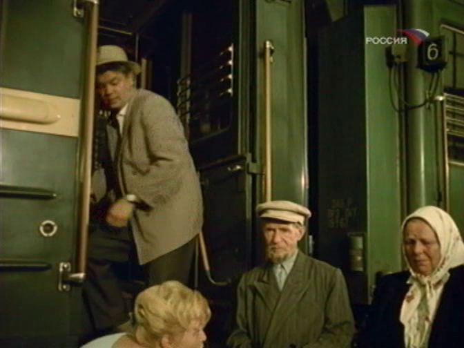9) Вагоны оборудованы электрическим отоплением (ЦМВ в составе поезда): за бабулькой и потом покрупнее покажут виднеется холостая розетка МВС 3000 В (межвагонное высоковольтное соединение - кабель). Это значит: либо вагон оборудован электропечами или электрическим калорифером (а часто бывало и то и другое вместе). Из литературы я вычитал, что комбинированные котлы отопления появились только в конце 1960-х.