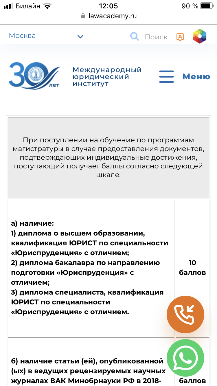 Да, именно так. 10 баллов было за индивидуальное достижение - окончание бакалавриата в МЮИ.Liski: Я у них такого в правилах не заметил. Более того, это вне закона. Там у них еще до 15 баллов за индивидуальные достижения, т.е. статьи, конференции, конкурсы, спорт и т.д. Скорее всего, именно про это речь.
