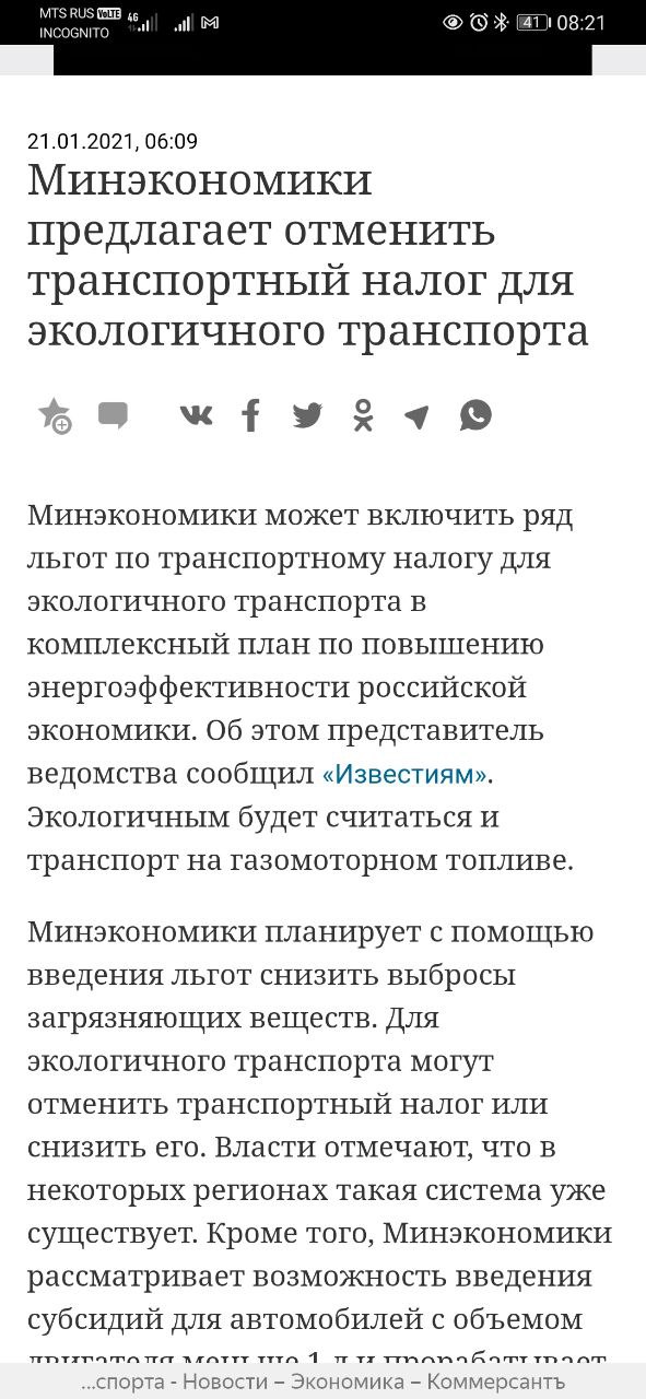 То есть Минфин должен провести Минэку расширенный семинар о природе налогов. И донести до мозгов, что суть транспортного налога - компенсация государством своих расходов на содержание дорог, гибдд, и прочее. В этом налоге нет экологии. Экологии нет даже в акцизах. Собственно и сама экологичность электротранспорта в валовом понимании уже давно не просто сомнительная, но и очевидно отсутствует