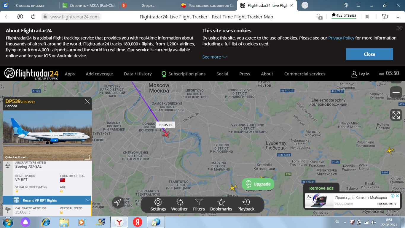 P. S. Ну вот, пожалуйста: 05:50 UTC. Рейс PBD539 LED - MRV той же трассой над Зубовской площадью, в 2,75 км от рабочего кабинета Президента.