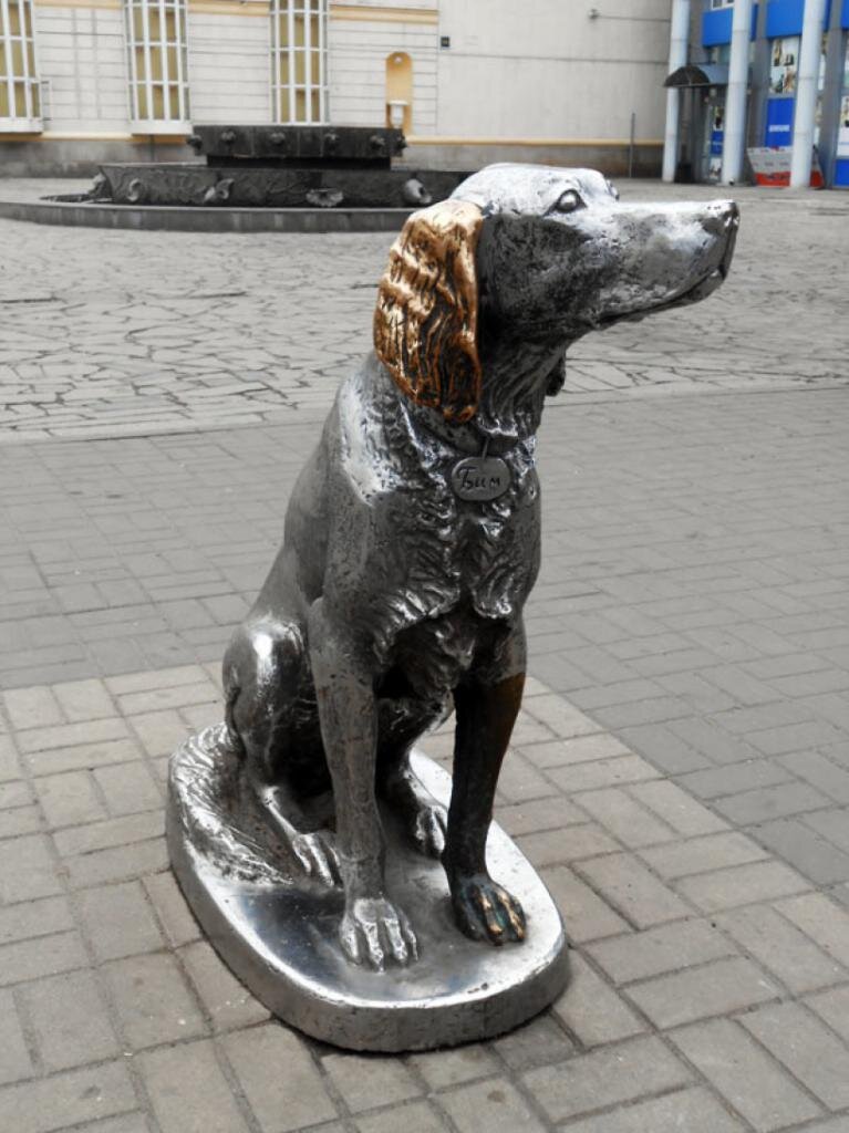 фото старое, сейчас он весь белый. вчера подходил к нему вечером, после сапог)ВЛ80: У нас ещё есть памятник Белому Биму.