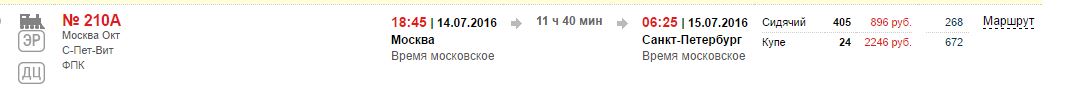 п. 29/30 С-Петербург Гл. – Москва Окт. – С-Петербург Гл.
