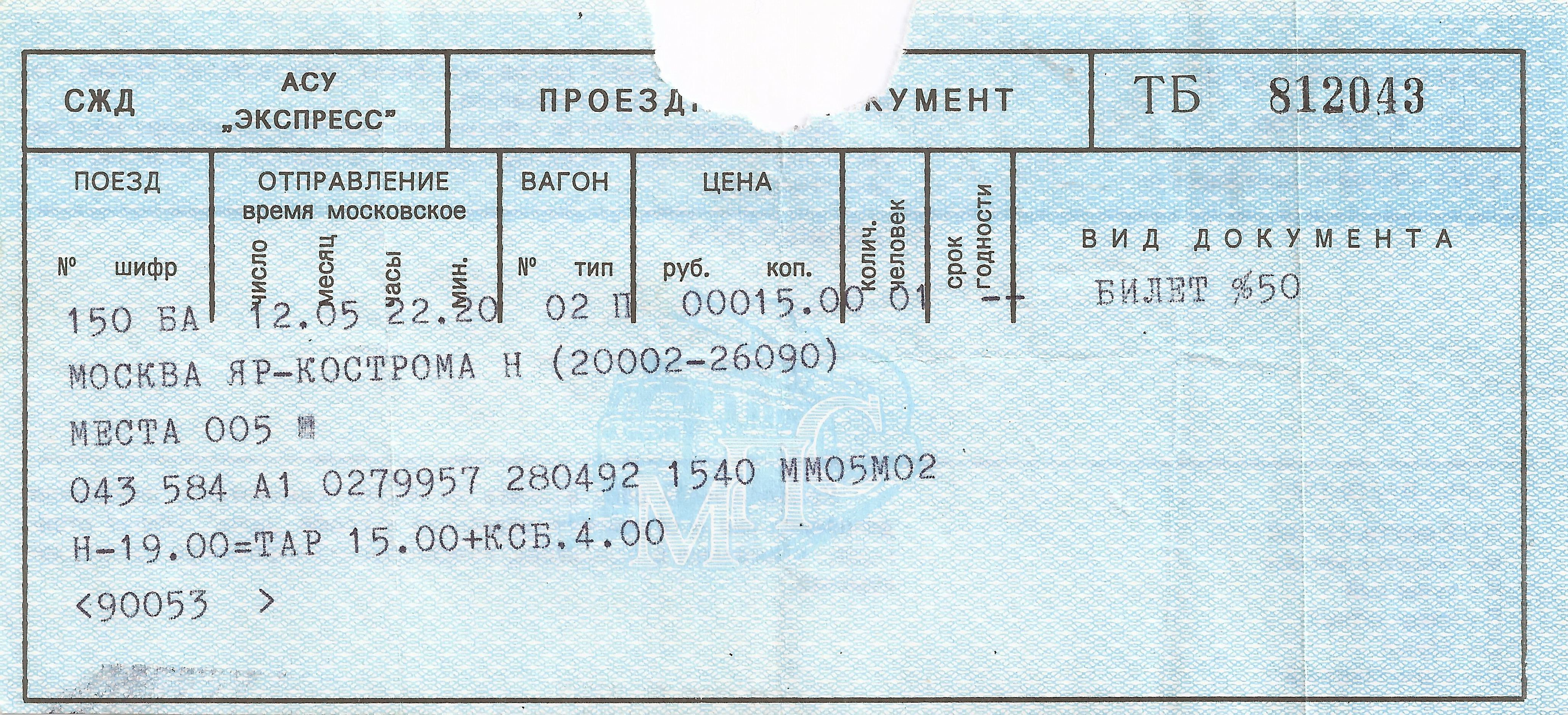 Поздний Союз . 80-ые годы . Все помнят билеты системы Экспресс-2 и Экспресс-3 . Билеты содержали также информацию о пункте продажи . На этом билете ММ05 - это трансагентство в Москве на Щёлковском шоссе .