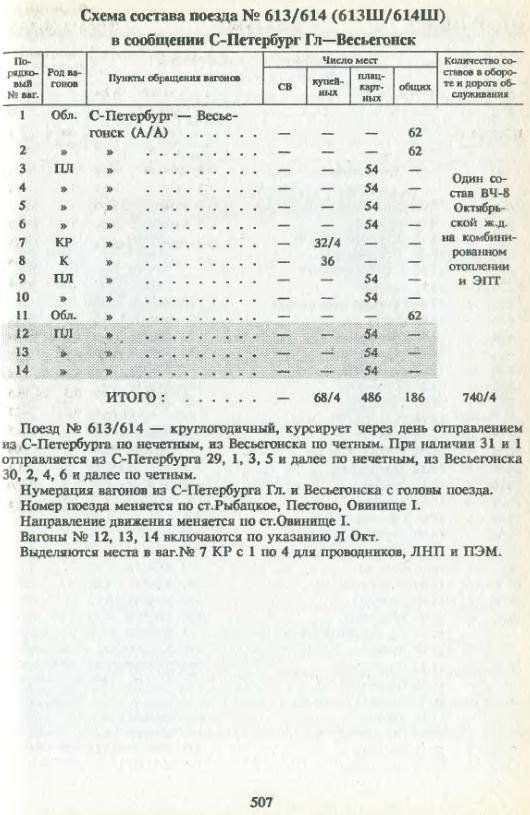 613/614 С.-Петербург - Весьегонск, служебка 1994 года.