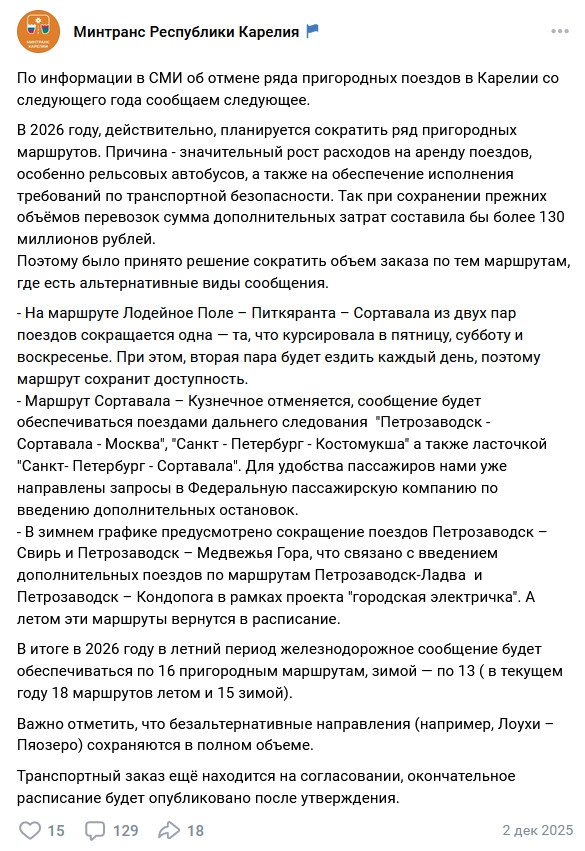 В Карелии по итогу много чего порезали