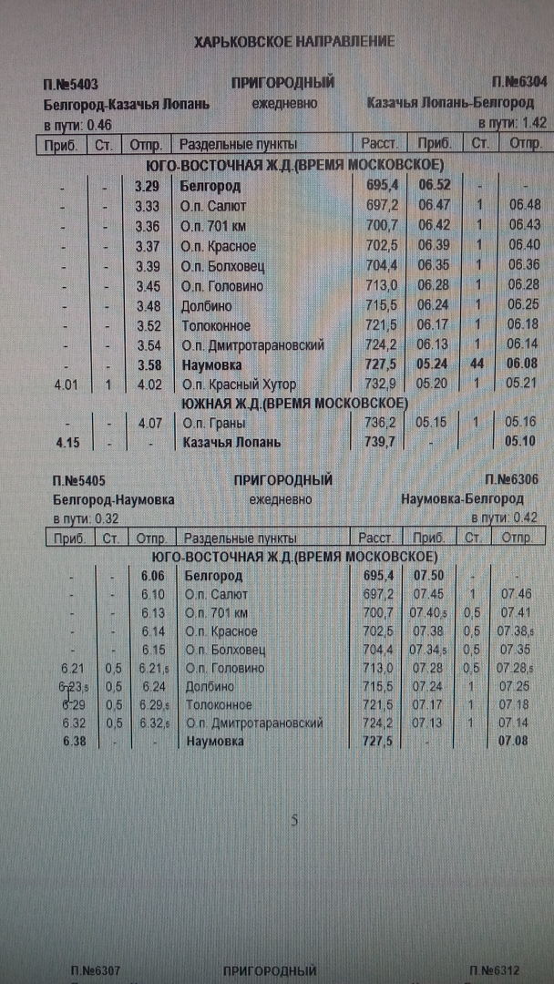 по Ю-Восточной, Южной, Московской жд и другим направлениям.Может у кого то есть служебные расписания,поделитесь. Особенно буду благодарен за пригородные служебки- по Орловско-Курскому, Белгородскому,Готнянскому, Льговскому, Брянскому,Воронежскому,Елецкому,Липецкому,Лискинскому,Мичуринскому жд узлу.