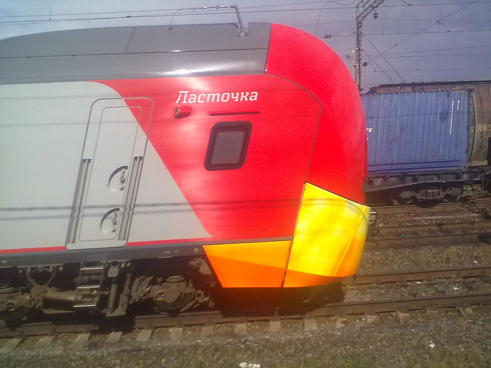 Внешний вид - состав ЭС1. Под посадку был подан к 4 платформе