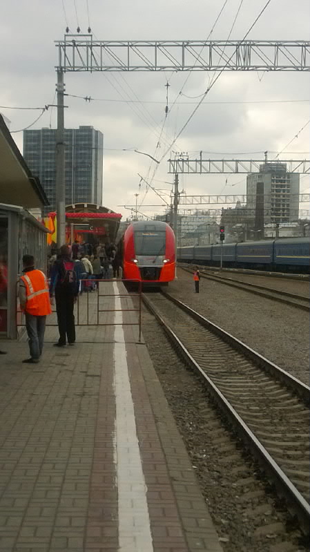 Ура, товарищи, "Ласточка" поехала!! Отправляется оттуда же, откуда и "Сапсан" - северный конец первой платформы. Был Мягков, пресса, оркестр! :*THUMBS UP*: