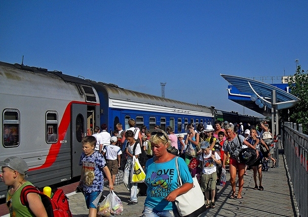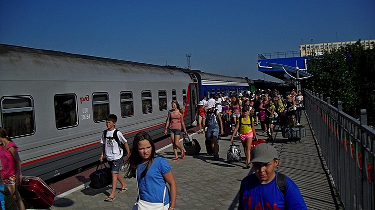 Состав поезда сформирован для перевозки детских групп к местам массового отдыха.