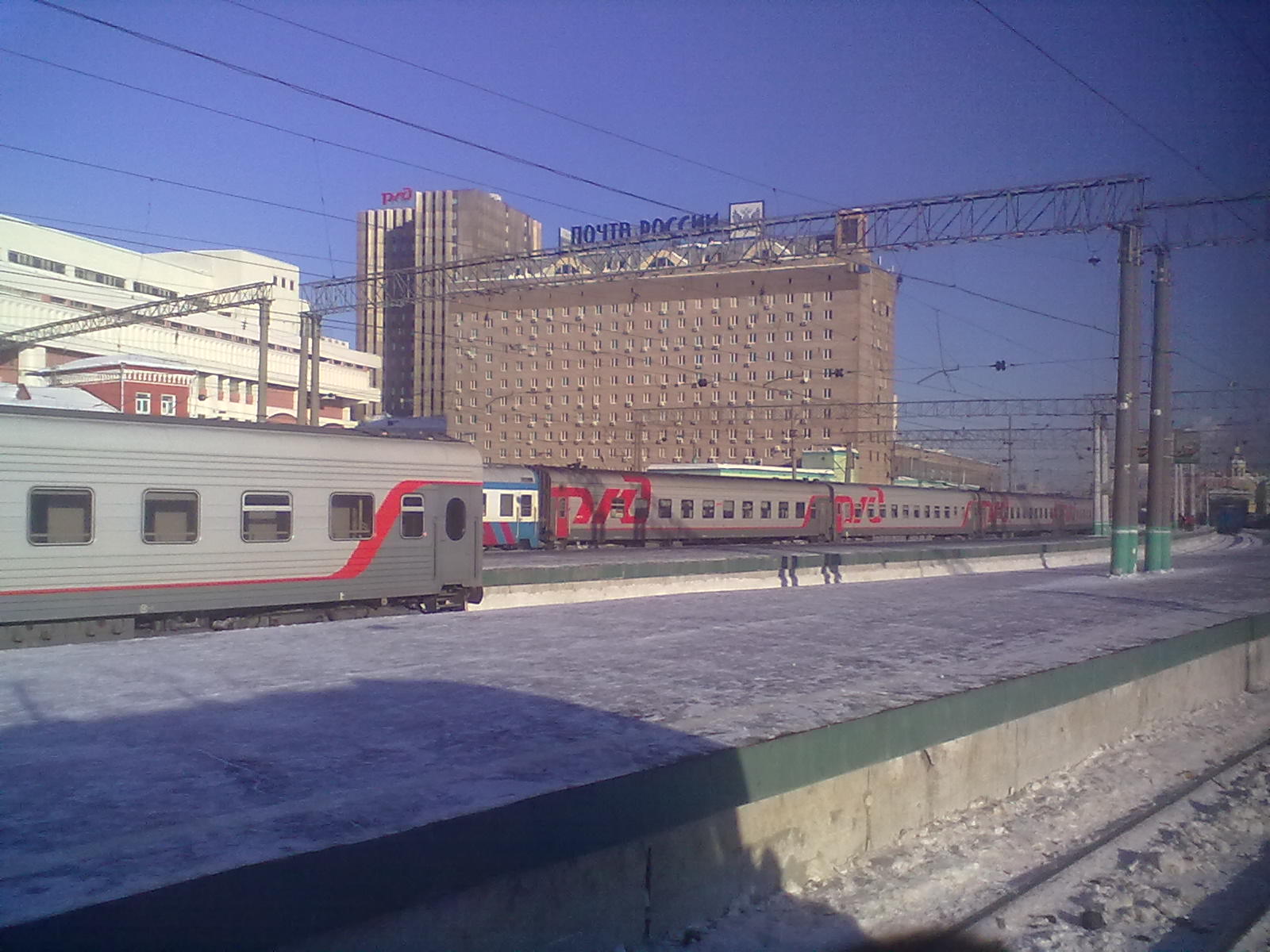 Сегодня коротышка вагонов из 7-8 прибыла на Казанский вокзал. Все вагоны - кроме одной плацки ТВЗ ненаутилуса - старые КВЗ и Аммендорфы. Вон они, на заднем плане: