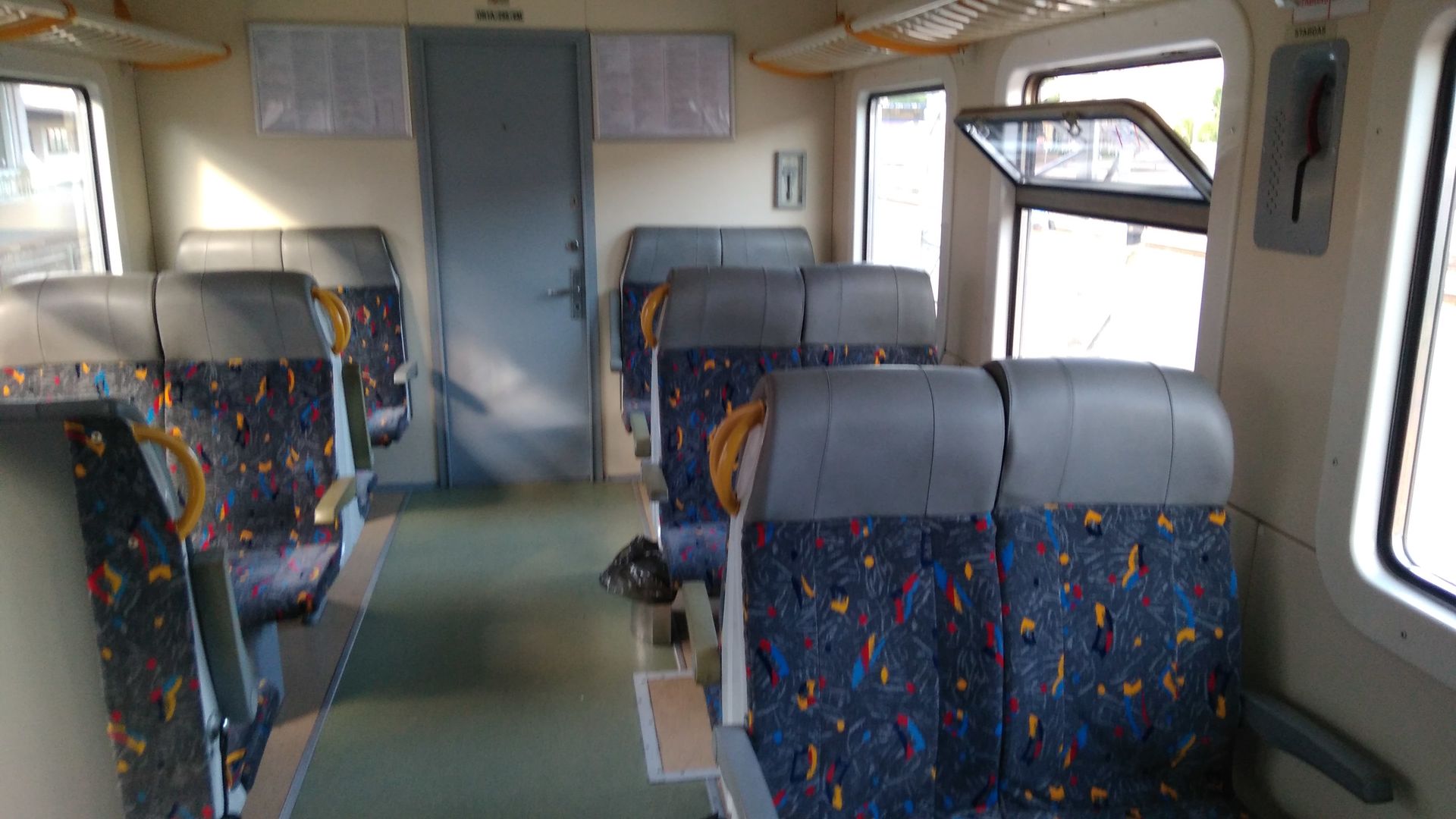 Головной, промежуточный и часть хвостового вагона имела честную компоновку 3 класса: мягкие трехместные диванчики, условно трехместные, тре меня туда бы не удалось впихнуть ::-[: