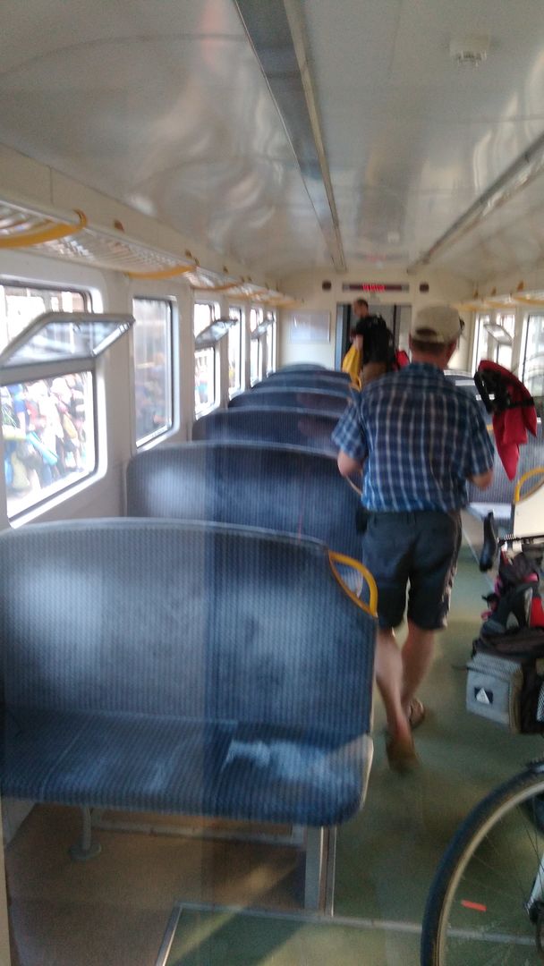 К Вильнюсу сидячих мест не было, многие стояли в проходах. Много народа с велосипедами, в промежуточном вагоне предусмотрено место для их перевозки. Чисто, резво, но не очень комфортно. Выседеть 2.42 в одном положении трудновато даже во 2 классе.