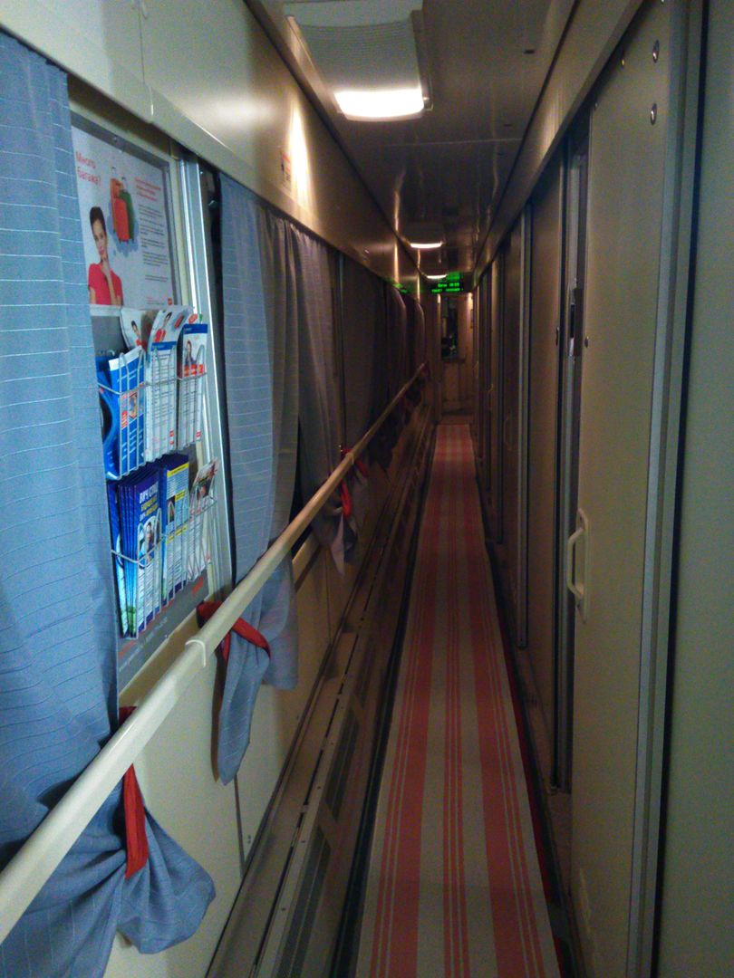 Дата поездки - 27.05.2016. Ехал по маршруту Липецк - Москва. Вагон №7 - купейный. Внешний вид - 61-4179 в ПИДокрасе 2006 года выпуская. Состав состоял: плацкартные все были 61-4447 разных годов выпуска, купейные были 61-4179 2006 годов выпуска и 61-4445 в ПИДокрасе. Вагон обслуживали 2 проводника, приятные дамы лет 30. В вагоне и туалете было чисто. Контингент был спокойный и тихий, разве что было много пассажиров со слишком уж важными лицами. На столах уже заранее были разложены наборы еды. Отдельно лежали булочки, к-е почему-то назывались тирольскими, и и нарезки и сырокопчённой колбасы. Остальное было запаковано в картонный пакет и состояло из йогурта, кекса, шоколадки, минералки. После отправления проходила официант и спрашивала о том что будете на завтрак. Предлагались блинчик либо каша. За час до прибытия в Москву, жратва была принесена. Традиционно снимаю один балл за полки висящие на цепочках сверху, хоть они и длиннее, чем в плацкартном, но всё-равно эта цепочка мне в ногах мешалась. Поезд формируется ЛВЧД-14 Тамбов. И того моя оценка поезда/поездки 9 из 10
