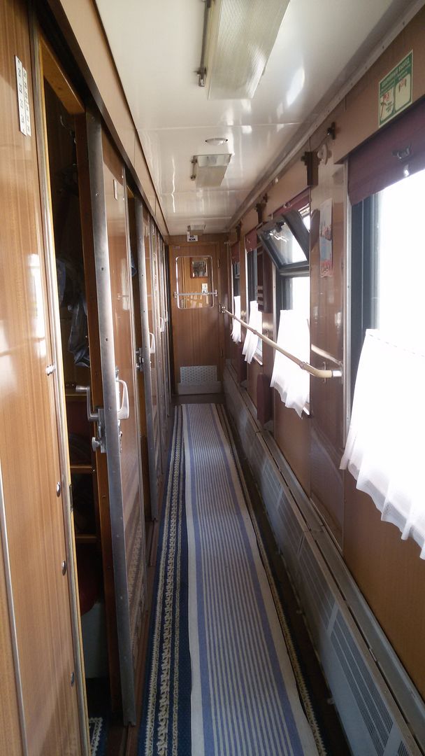 Поездка 10.07.2019г. по маршруту Липецк - Смоленск, вагон 6 К, штабной. Аммендорф 1996 г.в., с УКВ и без биотуалета. Всего 9 вагонов, 2 купейных и 7 плацкартных, плацкартные были по полному маршруту, до Гомеля, Витебска и... забыл ::-[: Ресторана не было. Первое впечатление - нормальное. Чистые вагоны. Внутри тоже везде чисто, не было неприятных запахов, свойственных потрепанным Аммендорфам. Да, вагон скрипел, стучал, выл и прочее - минус! Хотя был КВР, пластик остался везде родной. Штор не было, белая задергушка цельная на пол окна с символикой БЧ. Но во всех купе открывались окна-форточки! :*THUMBS UP*: Так же были в купе и коридоре красивые синие ковры. НО! Когда уже БЧ поменяет постельное белье??? Отсутствие пододеяльников в купейном вагоне и колючие одеяла :]:-O: , минус еще 2 балла! Покурить можно было за кондитерку в тамбуре на выбор ::-): В туалетах только жидкое мыло и туалетная бумага. Но, опять же, чисто. Обслуживание приятное и ненавязчивое. В целом поездка прошла хорошо, минус за скрипучий вагон, минус за отсутствие штор, минус 2 балла за постельные принадлежности. Итого 6 из 10. Отдельно отмечу, что везли пожилого человека на операцию в Смоленский центр ортопедии. Очень хорошо сработала служба "Центр содействия мобильности пассажирам". Поезд подавался на высокие платформы, провожали и встречали на коляске, от такси и до такси. ЛНП так же принимал в этом активное участие при посадке, а так же связывался со Смоленском, чтоб встречали маломобильного пассажира :*THUMBS UP*: