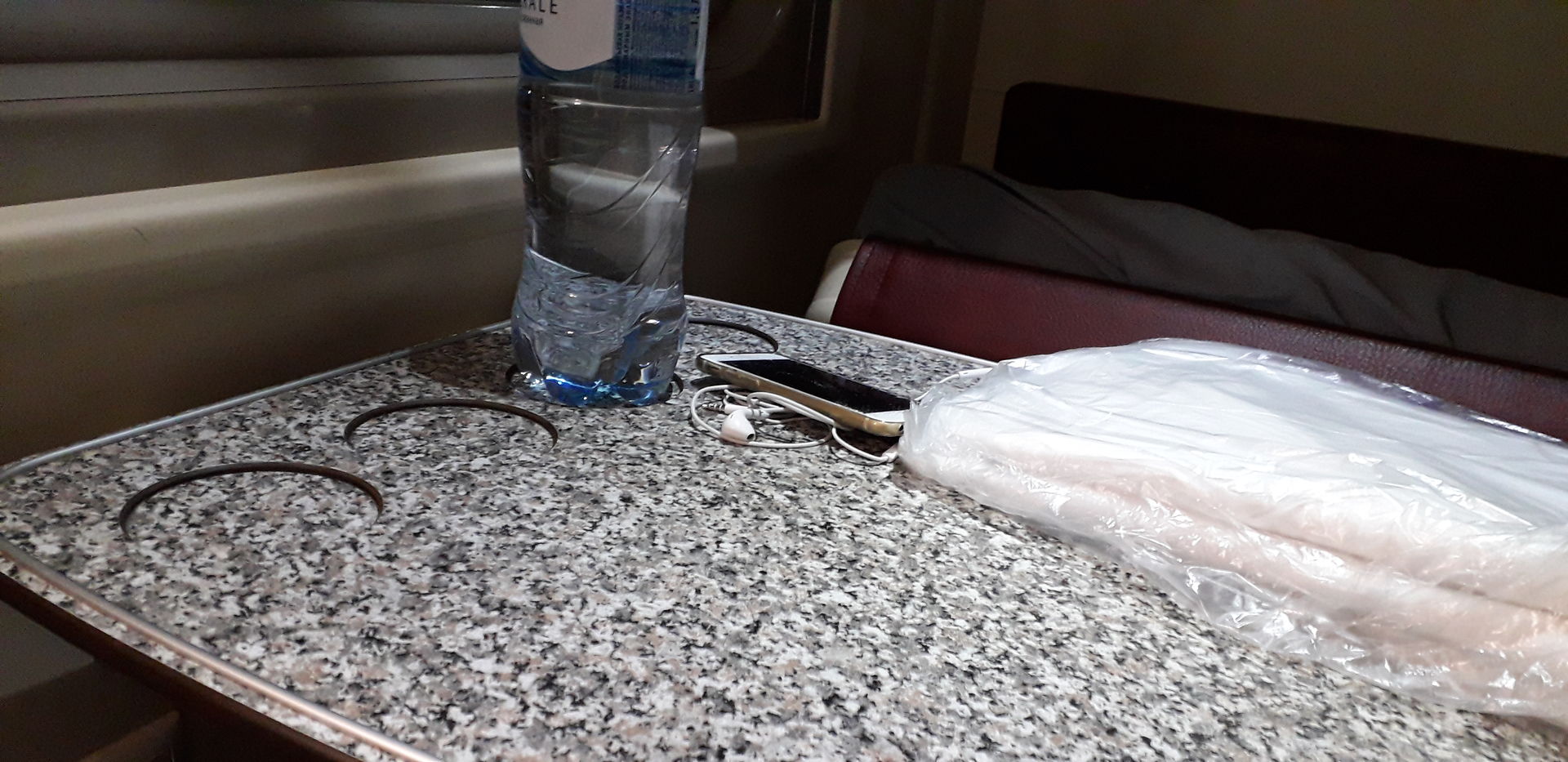 В вагоне чисто, фурнитура еще не покоцана, все освещение работает. Матрацы "вложены" в полки, кроме нижних боковых - для них отдельный матрац. Подушки синтепоновые, но для меня маленькие - подложил куртку и плед. Плед обычный, но не сыплется. Постельное белье стандартное, вместо пододеяльника - простынка. Полотенце вафельное.