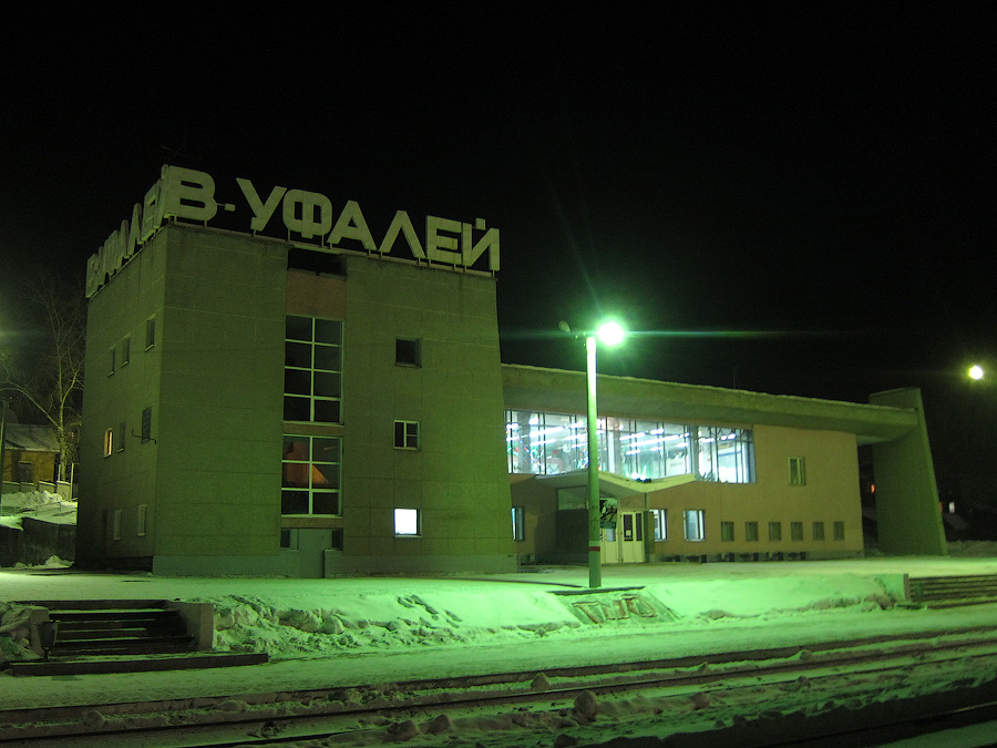 Вокзал и состав поезда на ст. Верхний Уфалей: