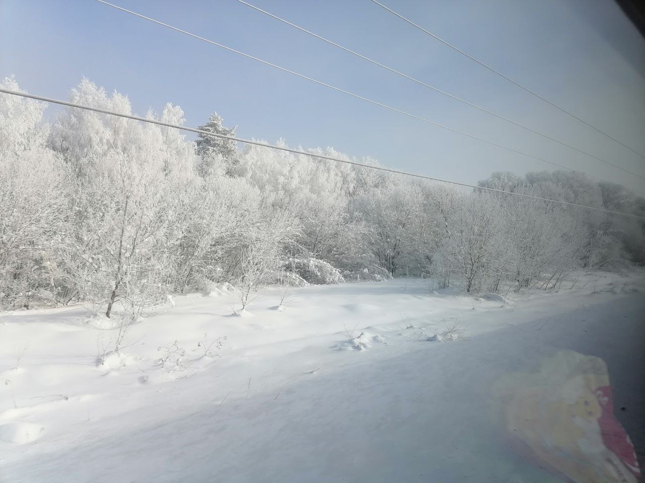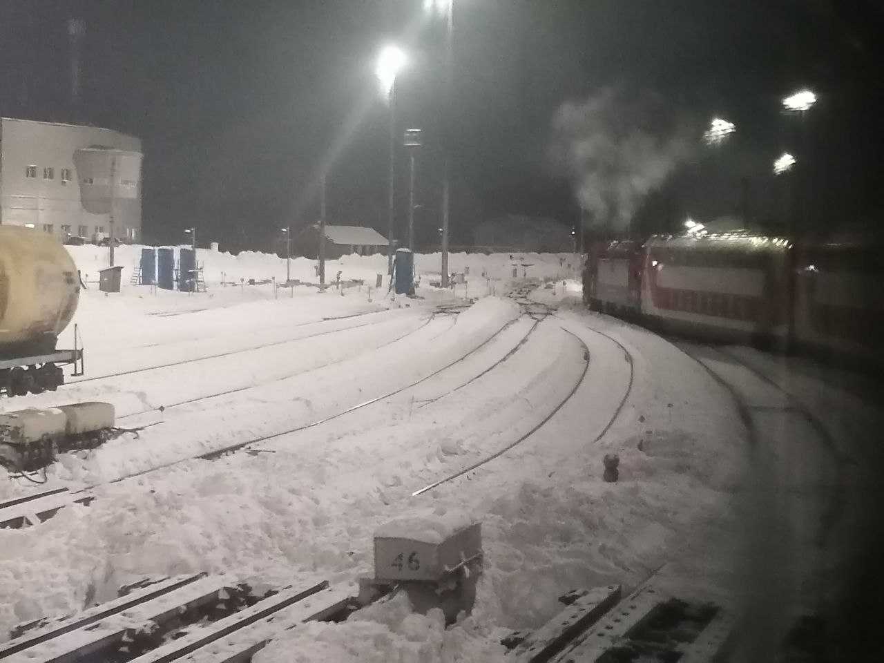 На 1-й путь медленно притащили на посадку 266-й, наш 6-й вагон был по факту четвёртым с головы, и только он (точнее крыша вагона) была в снегу и во льду.