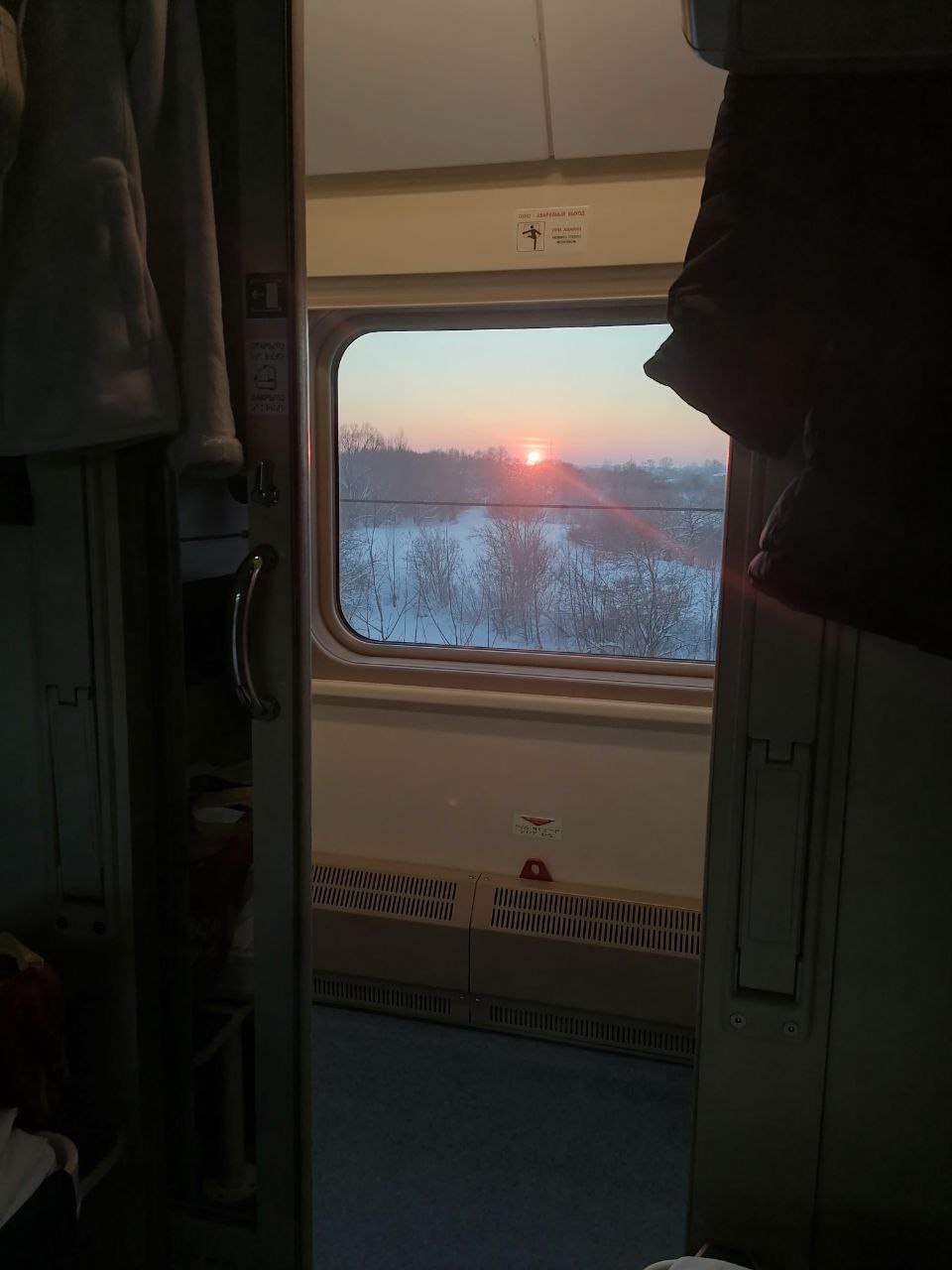 Отправились по графику в 11:00, быстро простучали по стрелкам и вышли на магистральный Рязанский ход. Прошла проводница и протёрла тряпкой во всех купе талую воду с обуви пассажиров. После чего повторно проверила документы, рассказала про особенности вагона, расположение туалетов, кулера и кипятка. Пожелала счастливого пути.