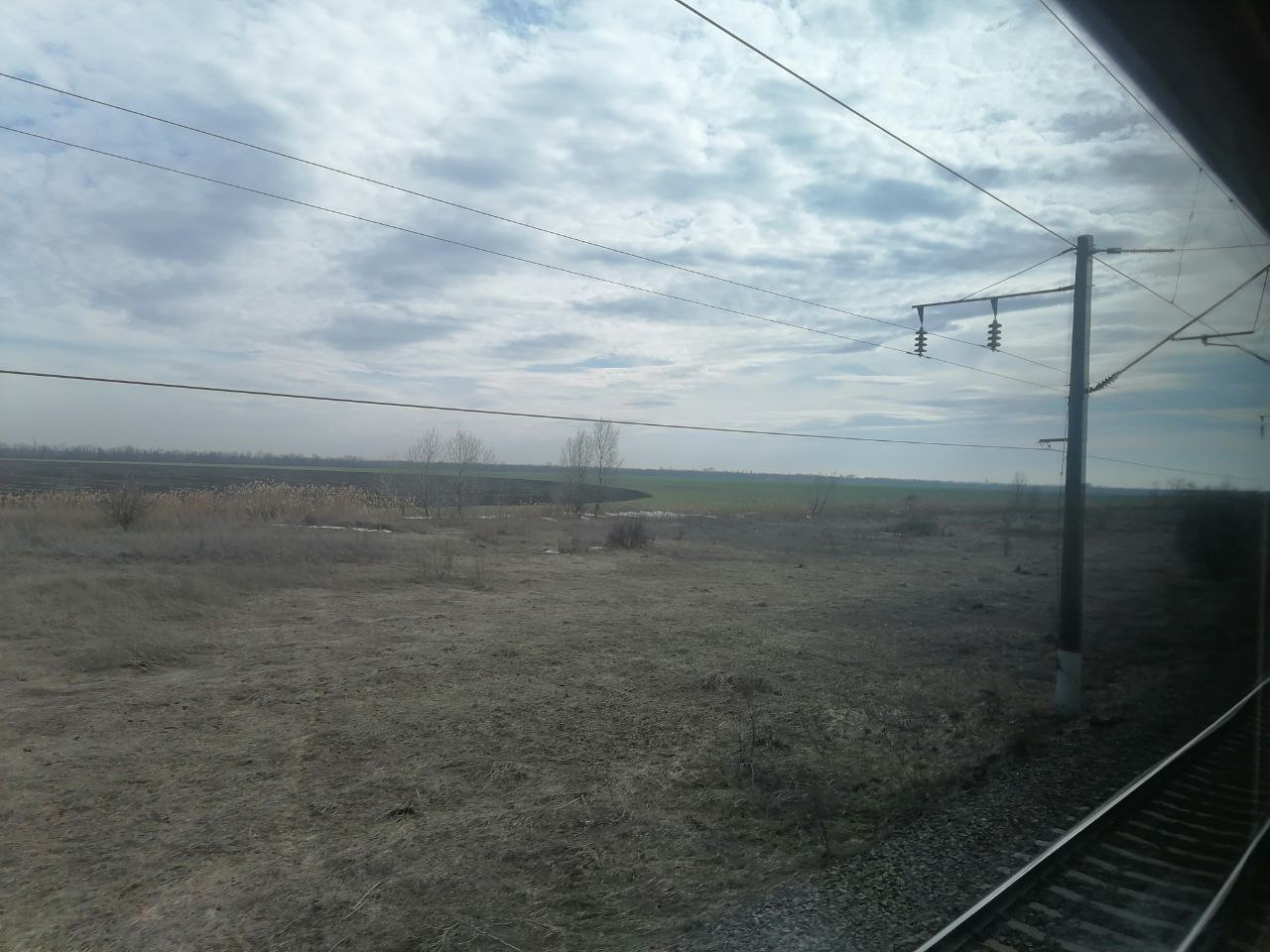 Тимашевская-обходная, снега уже нет, виднеется зелёная трава, привет Кубань!