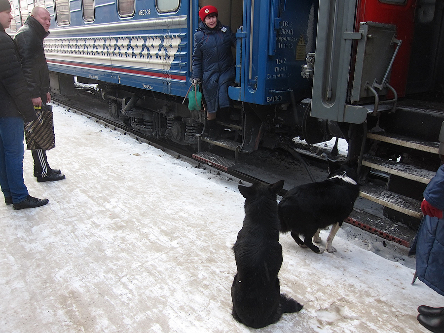Трое вышли из леса! Проводница моего вагона подкормила одну из балезинских собачек, после чего у входа в вагон сразу же нарисовалось ещё две!