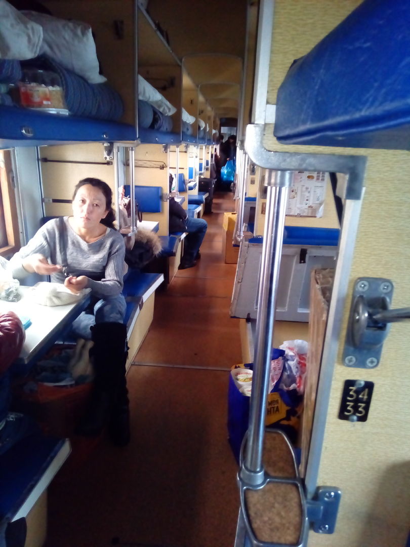 Поезд 321Т от Алматы-2 до Ташкента Центрального, даты поездки 30-31 декабря 2018 года. Вагон 4П (067-22581), место 33. О, ужас!!! Только враг народа мог составить этот поезд и тем более пустить его на международный маршрут. В составе было 14 вагонов, три купе и 11 плацкартов. Все места заняты. Мой вагон хоть и выпуска 1995 года, но в ужаснейшем состоянии, грязный, с прогибающимся полом в туалете ( там реально страшно было находиться). :]:-O: в вагоне вонь, тюки и коробки, даже плиты 4-х комфорочные везли. В поезде идёт круглосуточная торговля и обмен валюты. Ходят по вагонам даже ночью. Продают все: от еды и воды до чайников, утюгов, тостеров. Одежду всякую, сувениры, нижнее бельё, даже насвай... Это треш какой-то. Проводник огромных казах, килограммов эдак 180, кое как протискивался через весь этот беспредел. Контингент пассажиров - узбеки, казахи, немного русских. Семьи с детьми соседствуют с узбеками-нелегалами. В поезде курили постоянно. Вонь стояла на весь вагон. На границе стоять муторно, с казахской стороны 127 минут, с узбекской 90 минут. В общем трэш как он есть. Оценку не ставлю, ибо не за что.