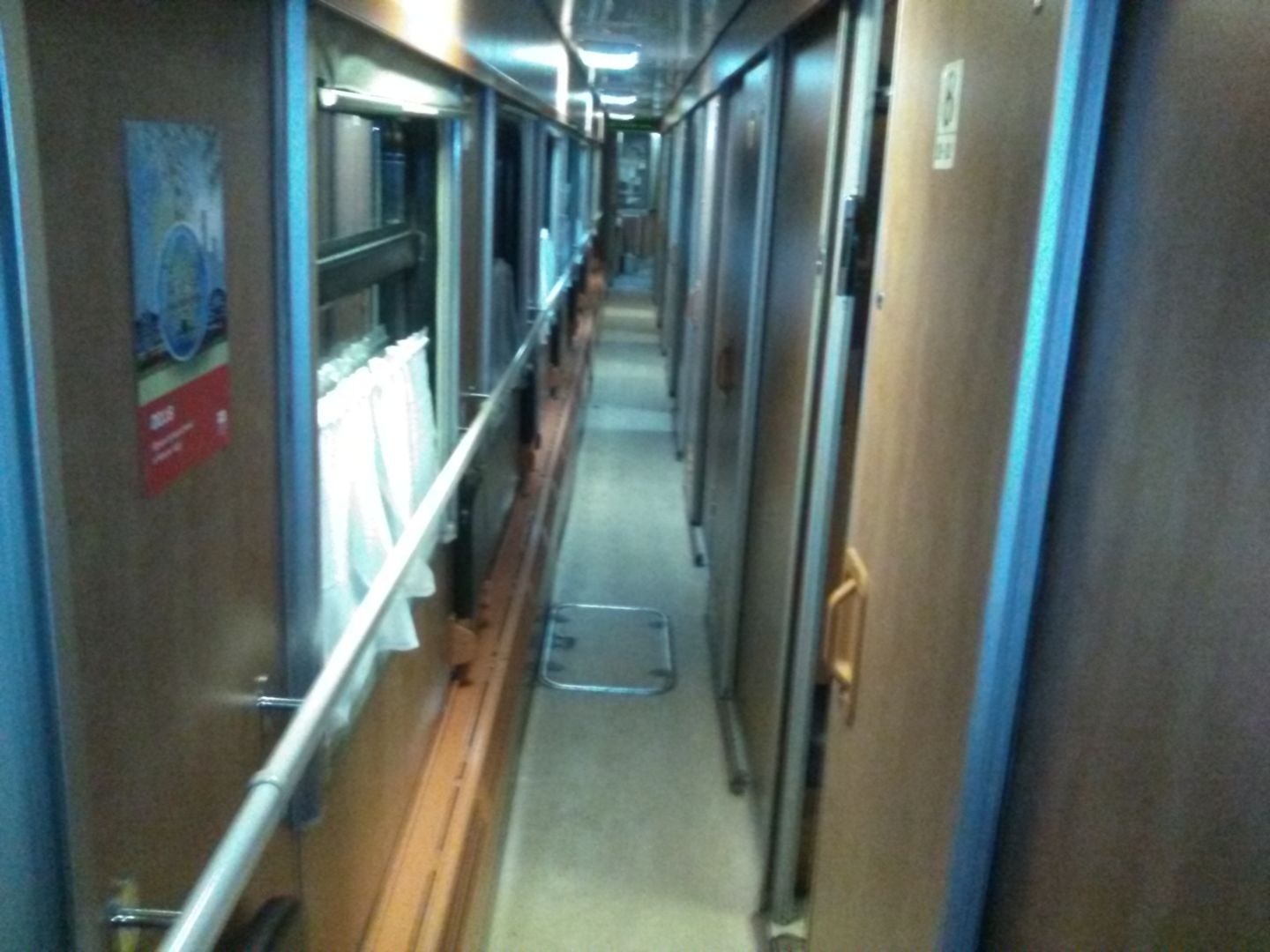А так - вагон вполне годный СМР с биотуалетом, кондиционером, 2-мя розетками под столом, серыми ковриками в купе и шторками на окошках.