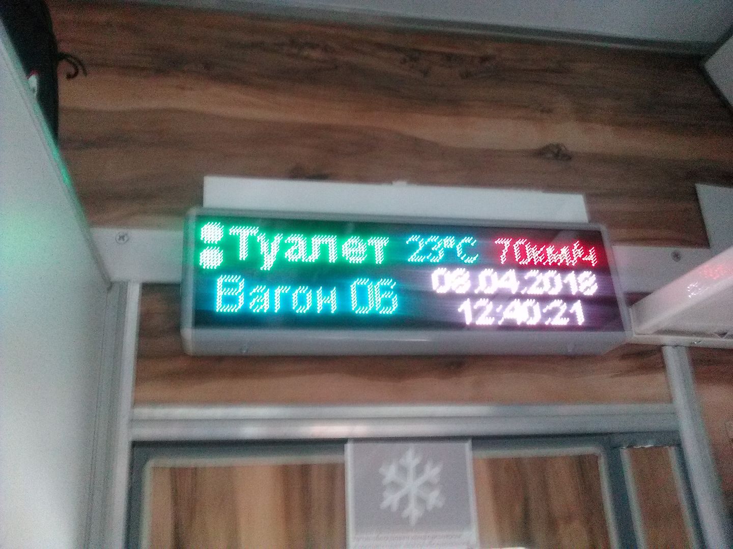 Все вагоны (кроме 16, 17 и 18) - с ЭЧТ и УКВ. В 13-м вагоне стоИт красивая, светящаяся разными цветами, маршрутная табличка. Такие бы во все вагоны!