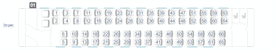 Схема вагонов на 68 мест (03,04, 05, 06, 07, 12, 13):