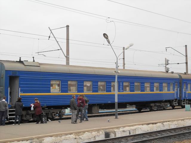 4. Состав в цветах УЗ. Схема в основном плацкартная, купейных всего три вагона + один СВ. Вагоны все старые. Большинство плацкартных 61-425 КВЗ с деревянными рамами, 1979-1981 г.в., и только пара вагонов ТВЗ 1998 г.в. Купейные вагоны и СВ - коричневые аммендорфы 47К.