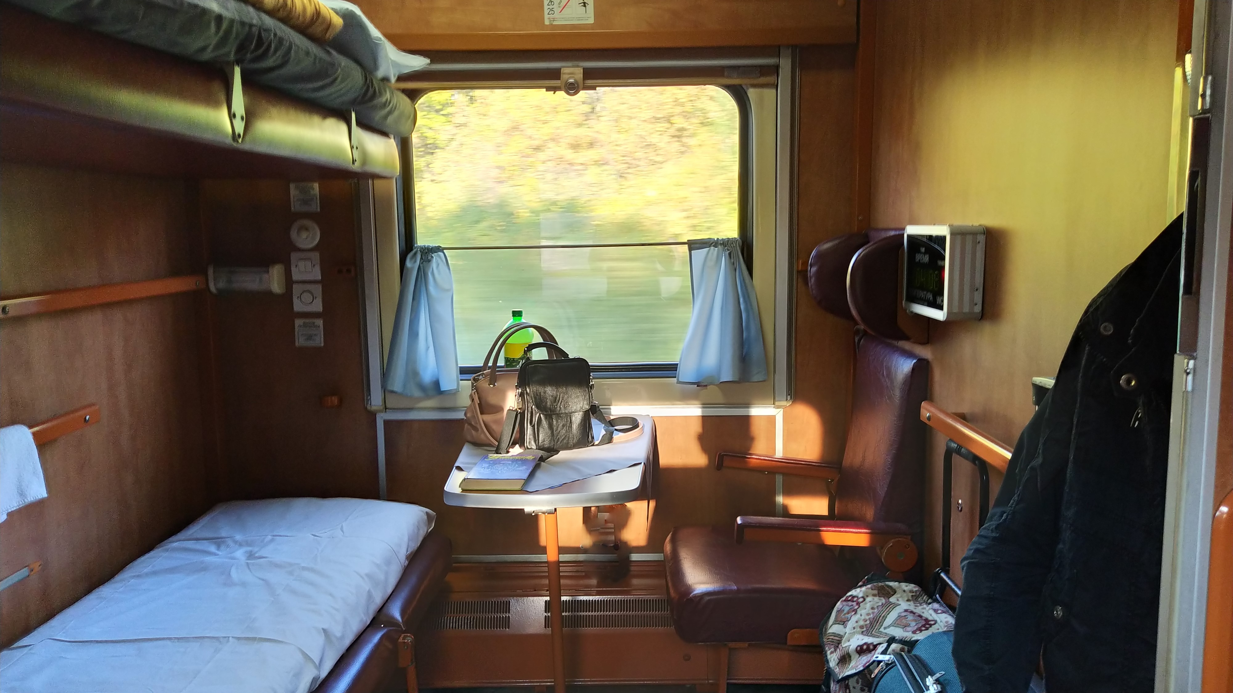 Поездка 15.09.20г. из Грязи - Воронежские в Лазаревскую. Вагон №7 (2К), места 25, 26 *И. При посадке в 3 минуты проводница крайне внимательно, а соответственно долго, проверяла билеты, сверяя их с паспортами. При этом нам предложила проходить в вагон, а сама занималась проверкой. Сам вагон штабной ТВЗ СМР, под орех, что очень порадовало. В вагоне положенные +24 градуса, комфортно. Чисто как в купе, так и в коридоре, и в туалетах. Сами проводники - сама любезность, что тоже приятно. Хотя чрез-чур, я бы сказал... Уборка проводилась, нижняя полка застелена. Комплект постельного белья с пододеяльником. Приятный мягкий ход вагона, ничего критично не скрипело. Контингент соответствовал классу вагона, обычные люди, едущие отдыхать на море. Пафосных и быдла не замечено) . Поездка оставила самые приятные впечатления - кондиционер работал, правда на ночь все же немного закрыл его бумагой, чтоб не дуло на голову на верхней полке. Туалеты био, работали исправно, всегда свободны, так как в штабном вагоне людей мало. Человек 10 ехало, все до курортных городов. В туалете присутствовало всё - от накладок до бумажных полотенец. И добавить особо нечего, так должна проходить любая поездка в поезде. Но обратная была поинтереснее, о чем напишу в соответствующем отзыве. Минус балл за отсутствие форточек в купе (хотя в инвалидном всегда аварийный выход), но и в обычных купе их нет. И минус балл за отсутствие больших штор в купейном вагоне. Итого 8 из 10 :;-): Рекомендую поезд!