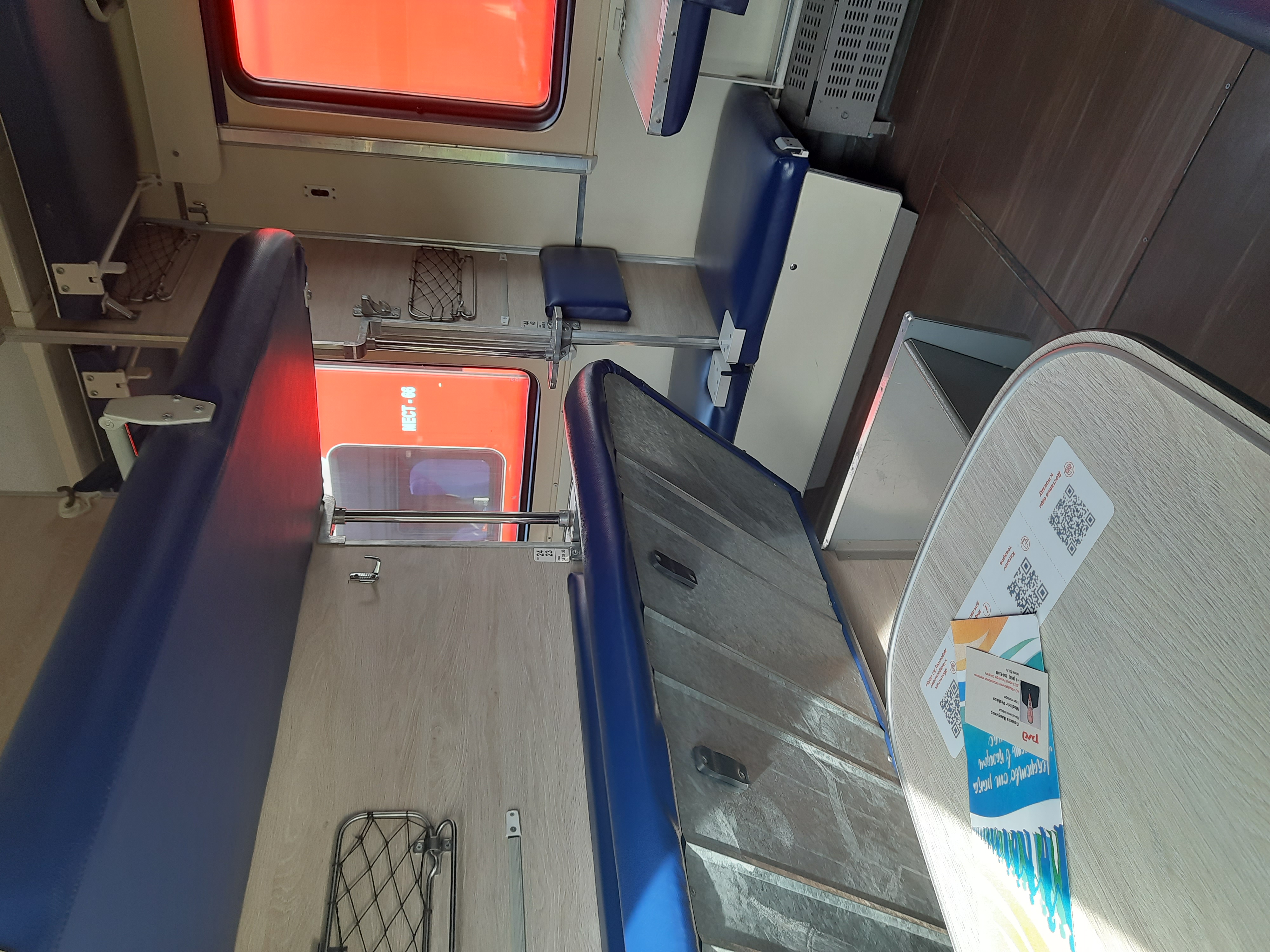 3. Вагон оказался внутри довольно чистым, без мусора, в моем последнем купе были подняты нижние полки, видимо, до меня там еще никто в тот день не ехал. В вагоне было довольно прохладно. Фотографии вагона приложу. В купе имелись розетки на нижних полках, на верхних usb-разъёмы. Но насчет последних не знаю, работали ли они. Розетки вполне себе рабочие. Туалет оказался био, без санзон. Хотя сайт РЖД при покупке билета предупреждает, что биотуалета и кондея нет.