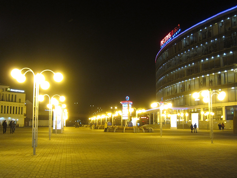 По-настоящему весенний вечер (а "Енисей" отправляется из НН в 22:46 (мск)) встретил достаточно пустынной площадью Революции в Нижнем Новгороде: