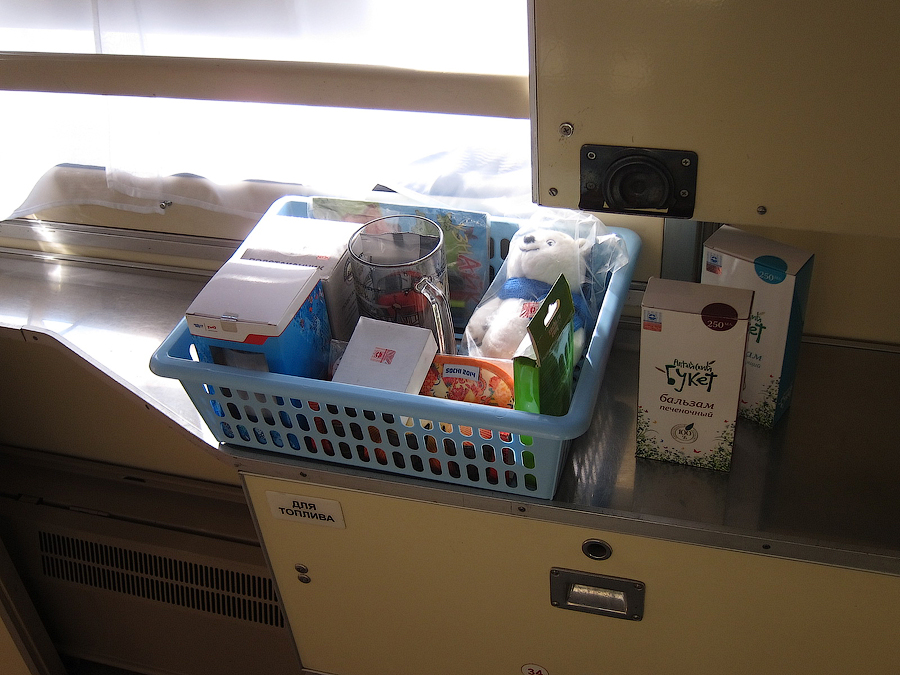 В целом поезда оставила отличные впечатления: оценка 10+ из 10. Бригада "Енисейского" филиала в части обслуживания в вагоне СВ оставила лучшие впечатлении среди всех виденных бригад в фирменных поездах на восток (а сталкивался со многими бригадами "России", "Сибиряка", "Томича"). Думаю, что и диплом, висевший в косом коридире вагона у титана, был получен не просто так, хоть и времени с того момента прошло уже прилично: