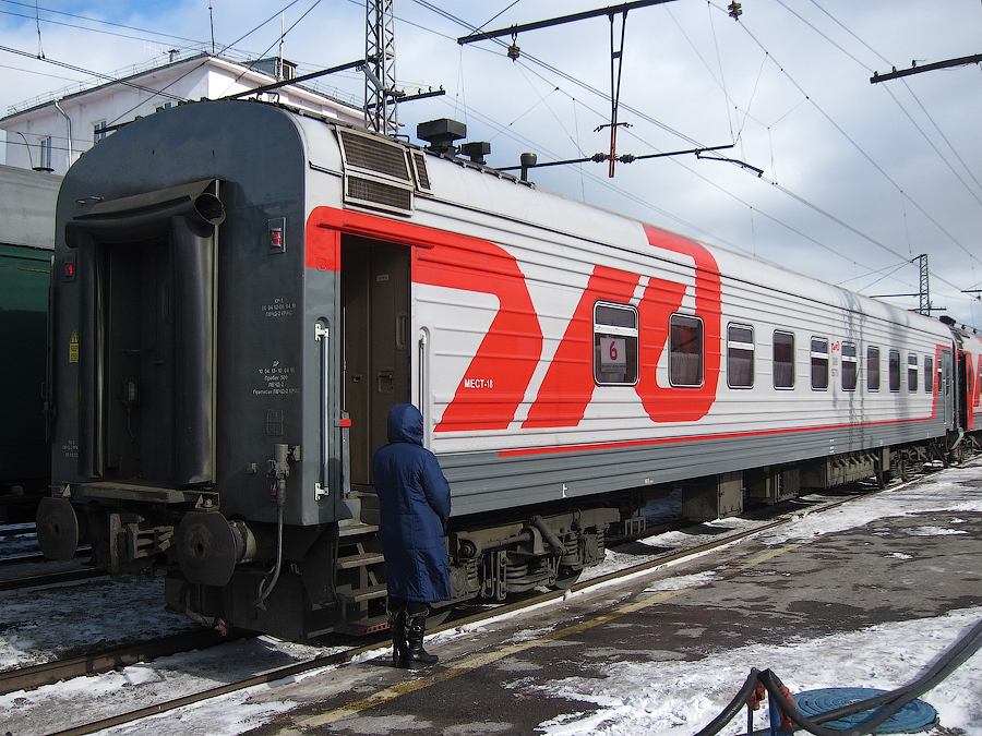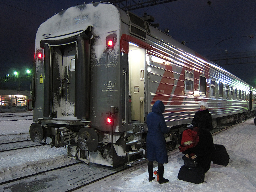 Вагон СВ №6 в составе скорого фирменного поезда №056Ы "Енисей" Москва - Красноярск на станции Пермь-II 14 марта 2014 года: