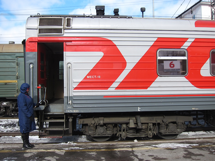 Купейный вагон №8 оказался единственным вагоном в составе в фирменных цветах "Енисея":